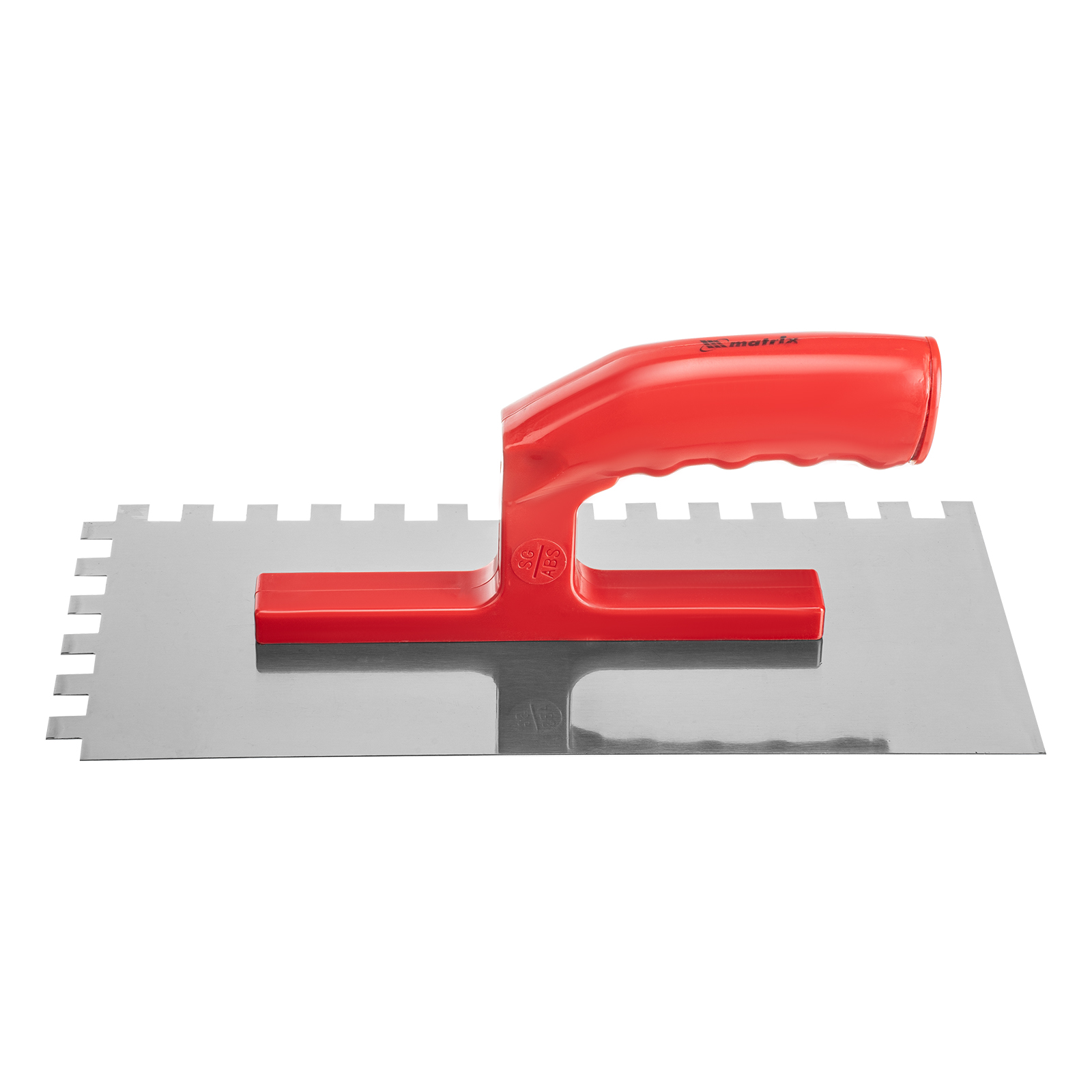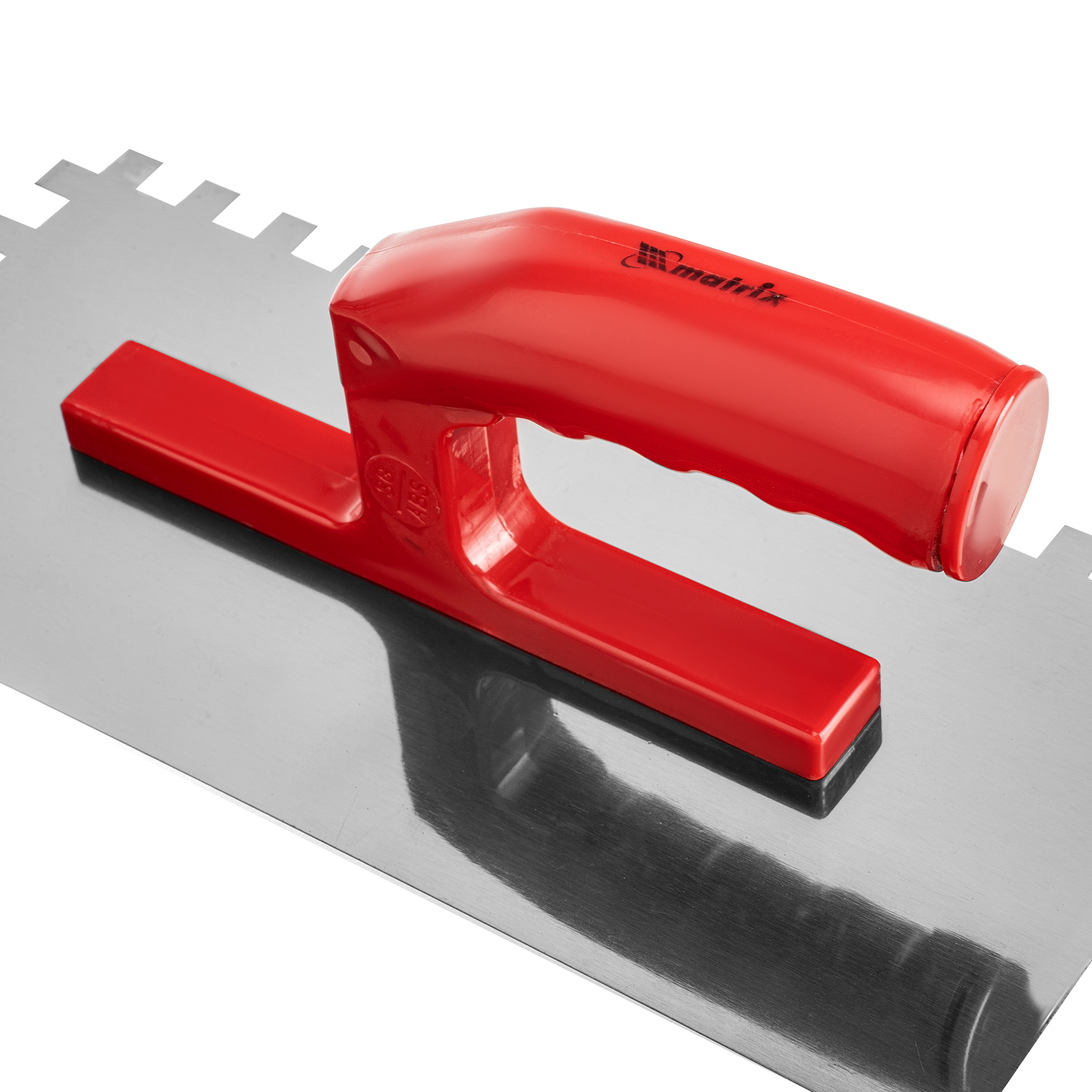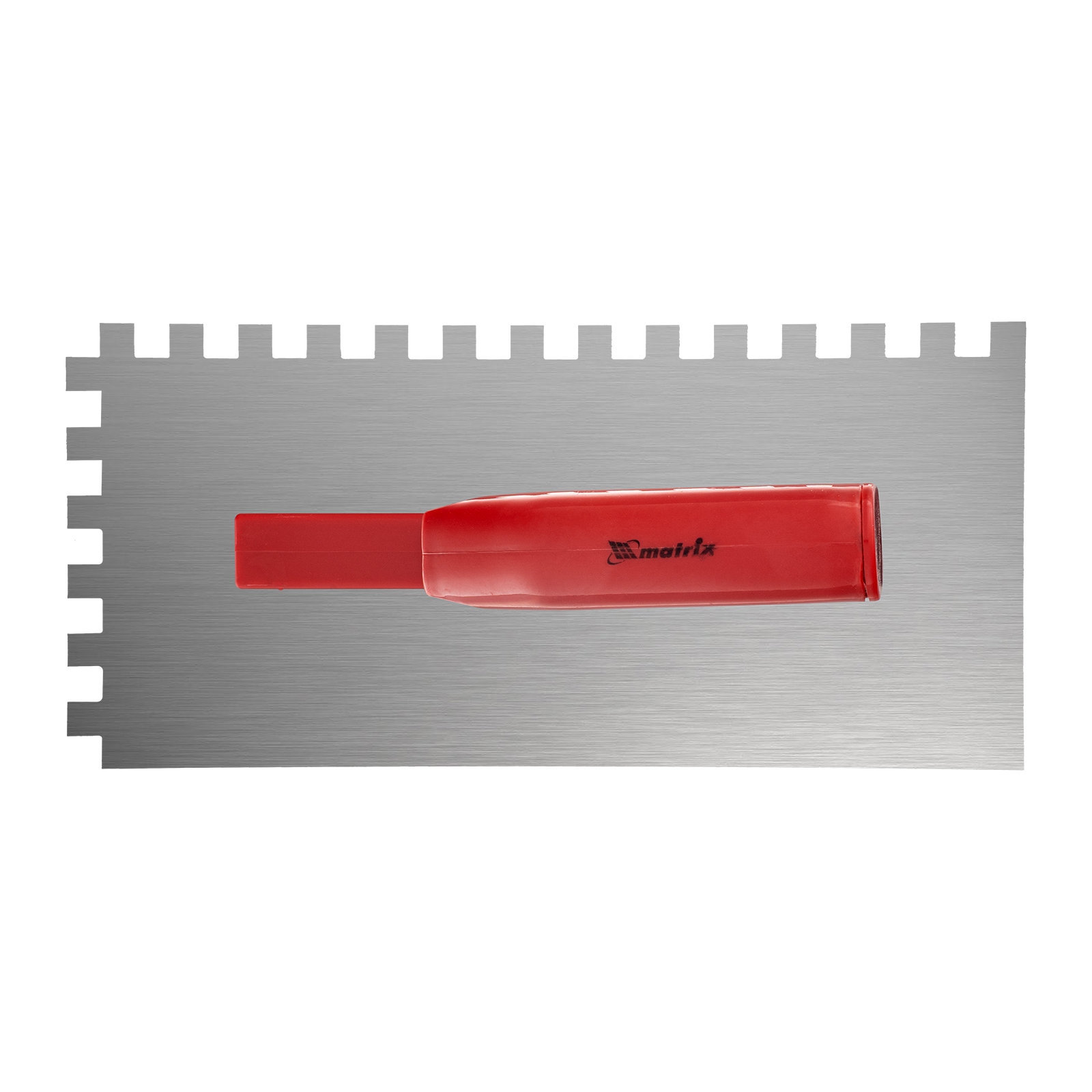 Гладилка стальная, 280 x 130 мм, зеркальная полировка, пластмастмассовая ручка, зуб 10 x 10 мм Matrix