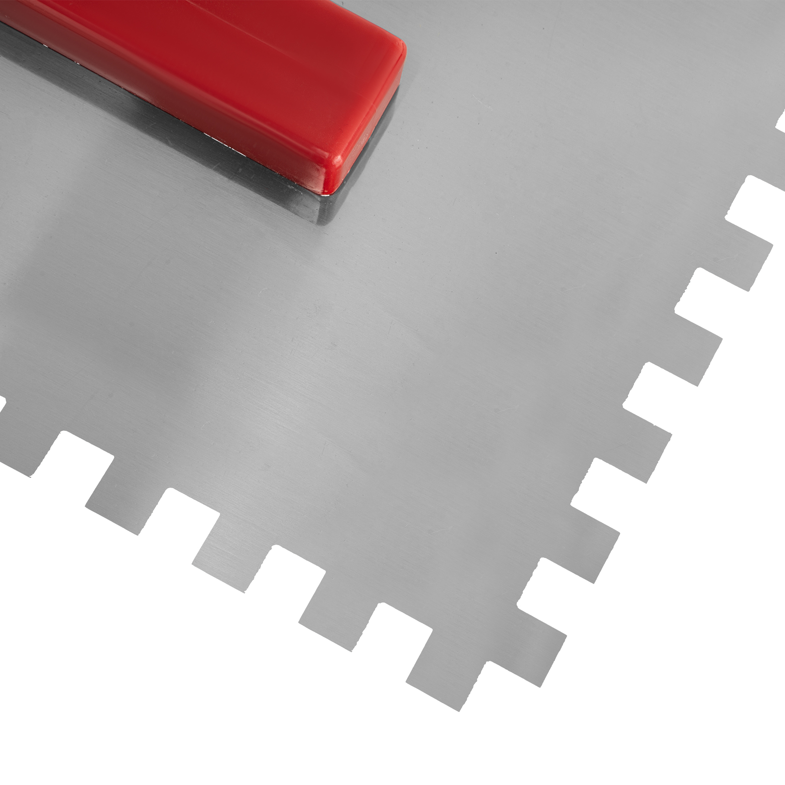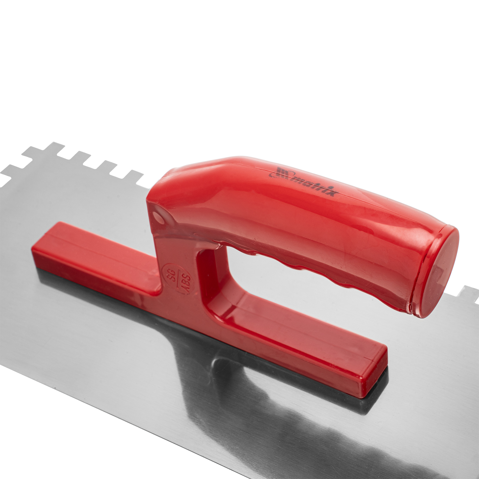 Стальная гладилка Matrix 86778 размером 280 x 130 мм, с зубьями 8 x 8 мм, зеркальной полировкой и пластмассовой ручкой, поможет ровно нанести штукатурку или строительный раствор. Зубчатые края гладилки обеспечивают правильное распределение плиточного клея для прочной фиксации плитки.
