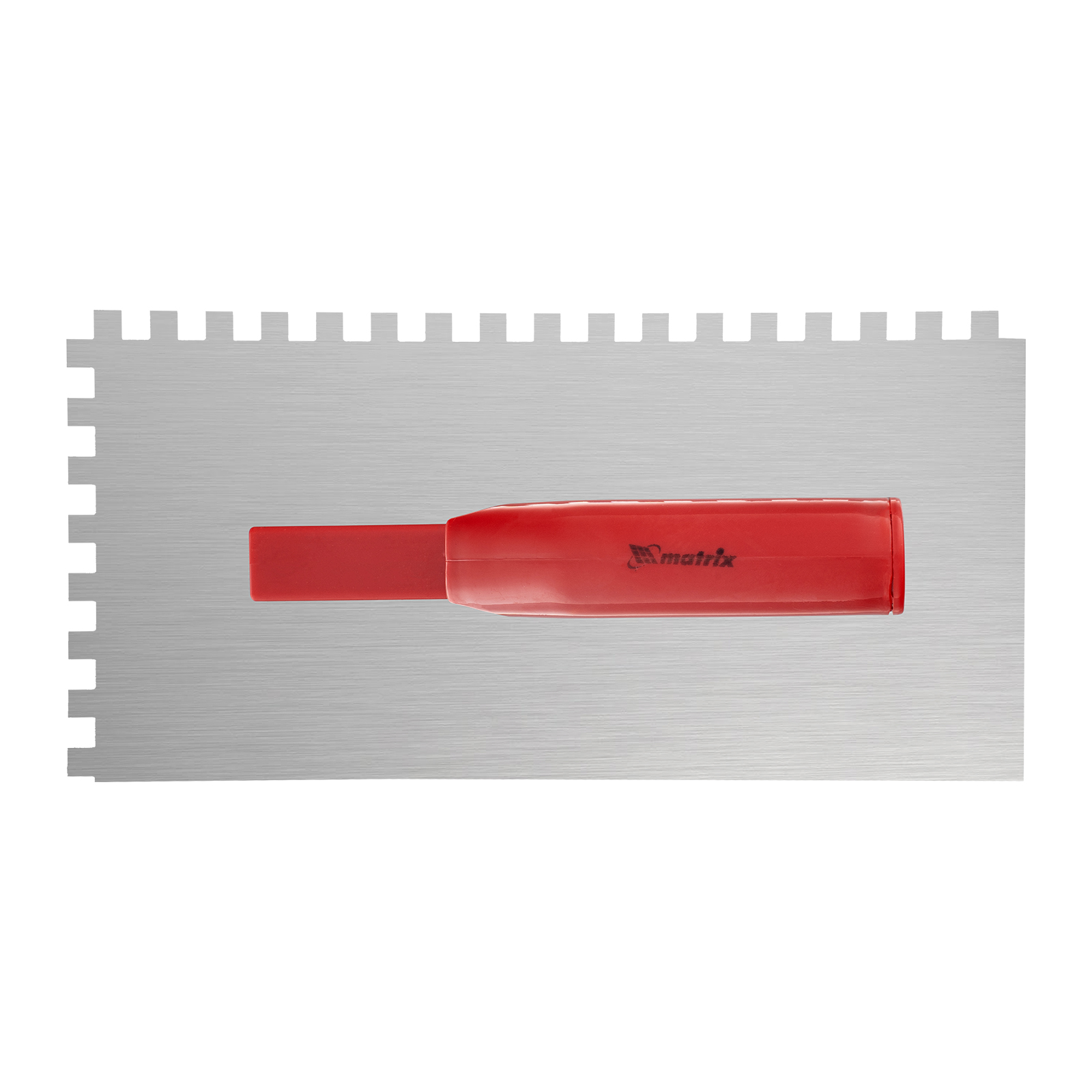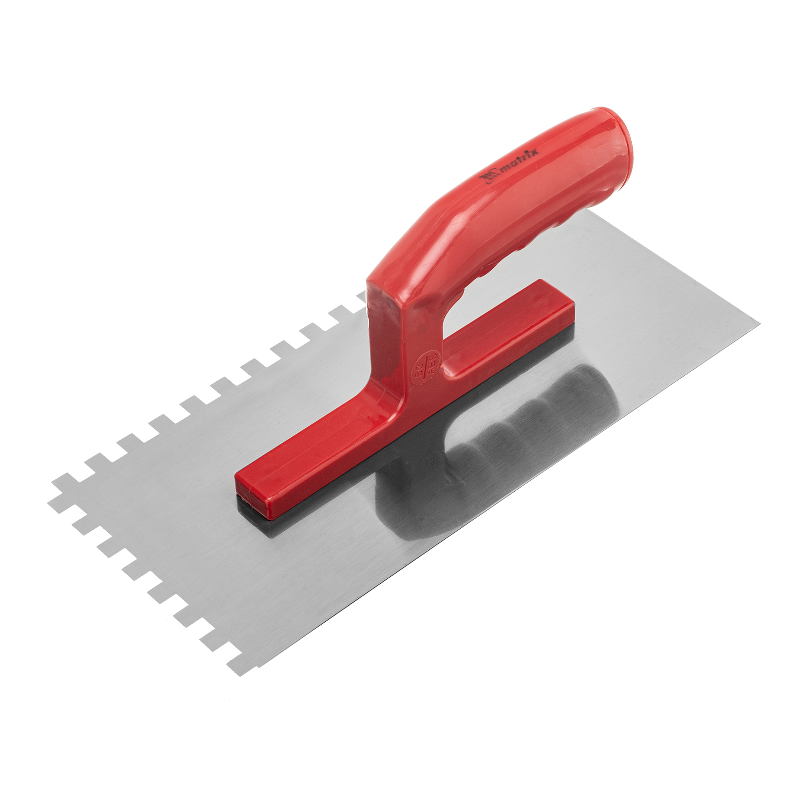 Гладилка стальная, 280 x 130 мм, зеркальная полировка, пластмастмассовая ручка, зуб 8 x 8 мм Matrix в Казани