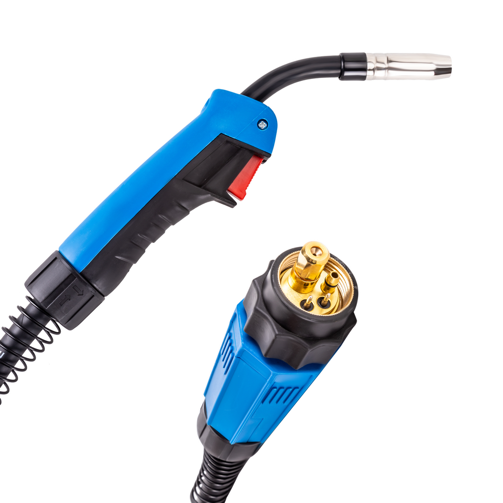 Сварочная горелка MIG-15 3м предназначена для сварки MIG/MAG при подключении к аппаратам полуавтоматической сварки для выполнения различного вида сварочных работ. Удобная рукоятка с кнопкой управления сварочным процессом и эргономичный дизайн горелки обеспечивают максимальный комфорт во время работы.ПРЕИМУЩЕСТВА:Воздушное охлаждениеУправление кнопкой на рукояткеЕвро разъёмФУНКЦИОНАЛЬНЫЕ ОСОБЕННОСТИ:ЕВРО-РАЗЪЁМ: Стандартный евро-разъём горелки даёт возможность подключения к большинству современных сварочных полуавтоматов.КОМПЛЕКТАЦИЯ: Горелка MIG-15 3м - 1 шт.; Гусак угол изгиба 40°, длина 140 мм, резьба M6/M10 x 1мм - 1 шт.; Канал направляющий стальной синий - 1 шт.; Сопло коническое 12 мм - 1 шт.; Медный наконечник M6 x 25 х 0,8 - 1 шт.; Диффузор сопла (MIG-15) - 1 шт.; Спираль к соплу (MIG-15) - 1 шт.; Изолятор (MIG-15) - 1 шт.*Производитель оставляет за собой право вносить изменения в комплектацию оборудования без предварительного уведомления покупателя.