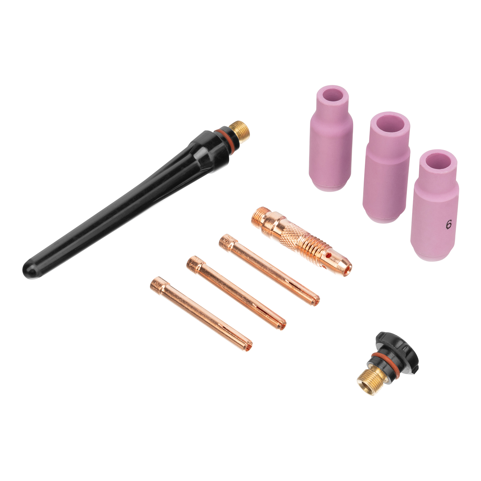Сварочная горелка Denzel TIG WP26 93644 с рукавом длиной 3 м и управляющим разъемом на 2 пина используется для аргонодуговой сварки неплавящимся электродом диаметром 1-4 мм. Максимальная величина постоянного сварочного тока составляет 180 A, переменного — 150 A. Горелка подходит для работы со сталями и цветными металлами, в т.ч. алюминием.