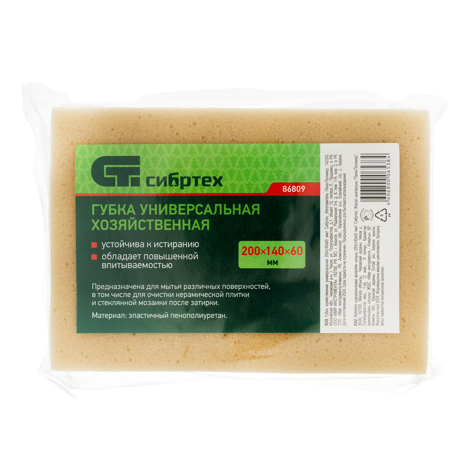 Универсальная хозяйственная губка Сибртех 86809 размером 200 х 140 х 60 мм предназначена для выполнения широкого спектра бытовых работ. Используется для мытья различных поверхностей, в том числе для очистки керамической плитки и стеклянной мозаики после затирки.