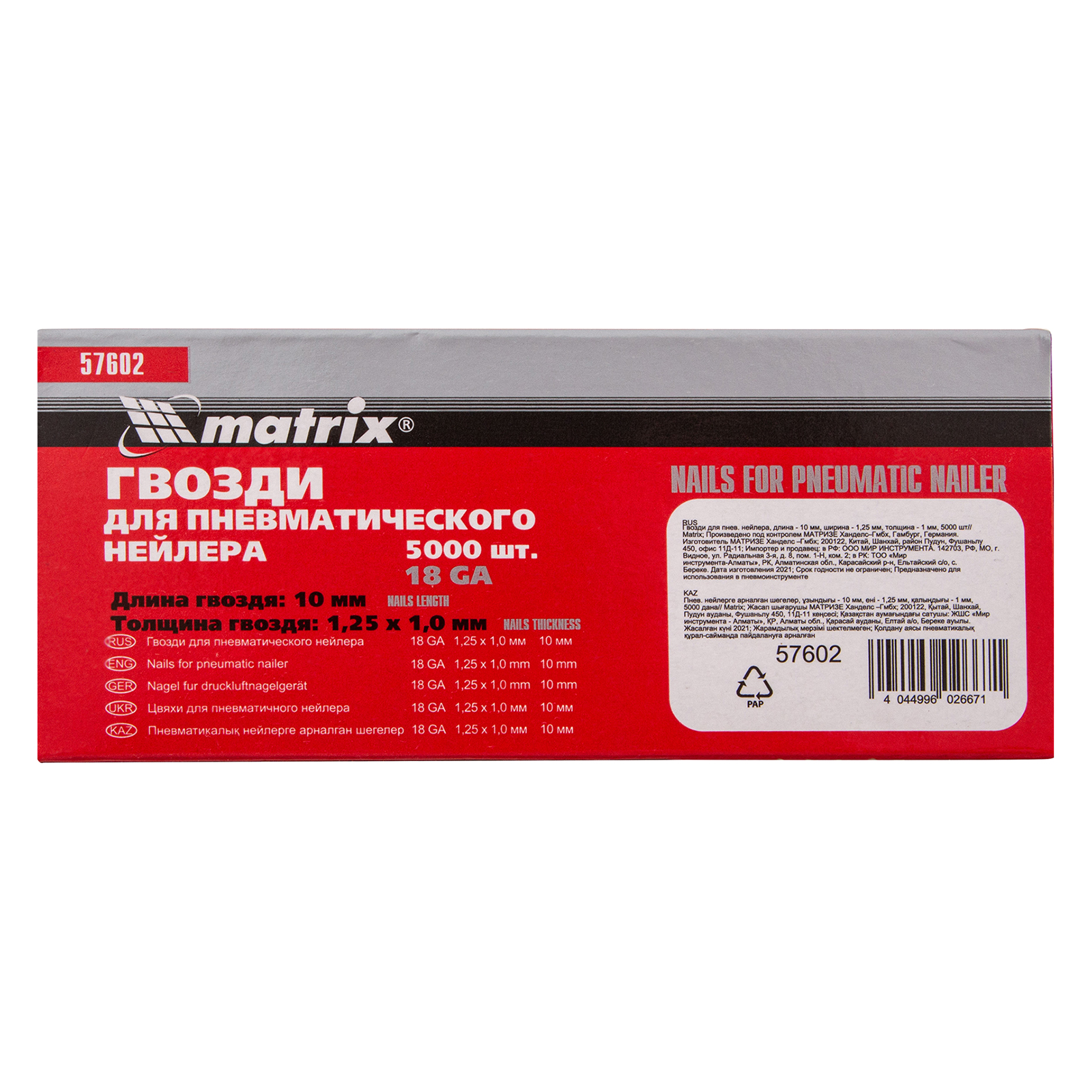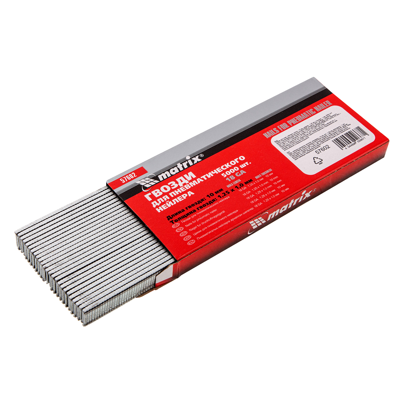 Гвозди для пневматического нейлера, длина 10 мм, ширина 1.25 мм, толщина 1 мм, 5000 шт Matrix в Казани