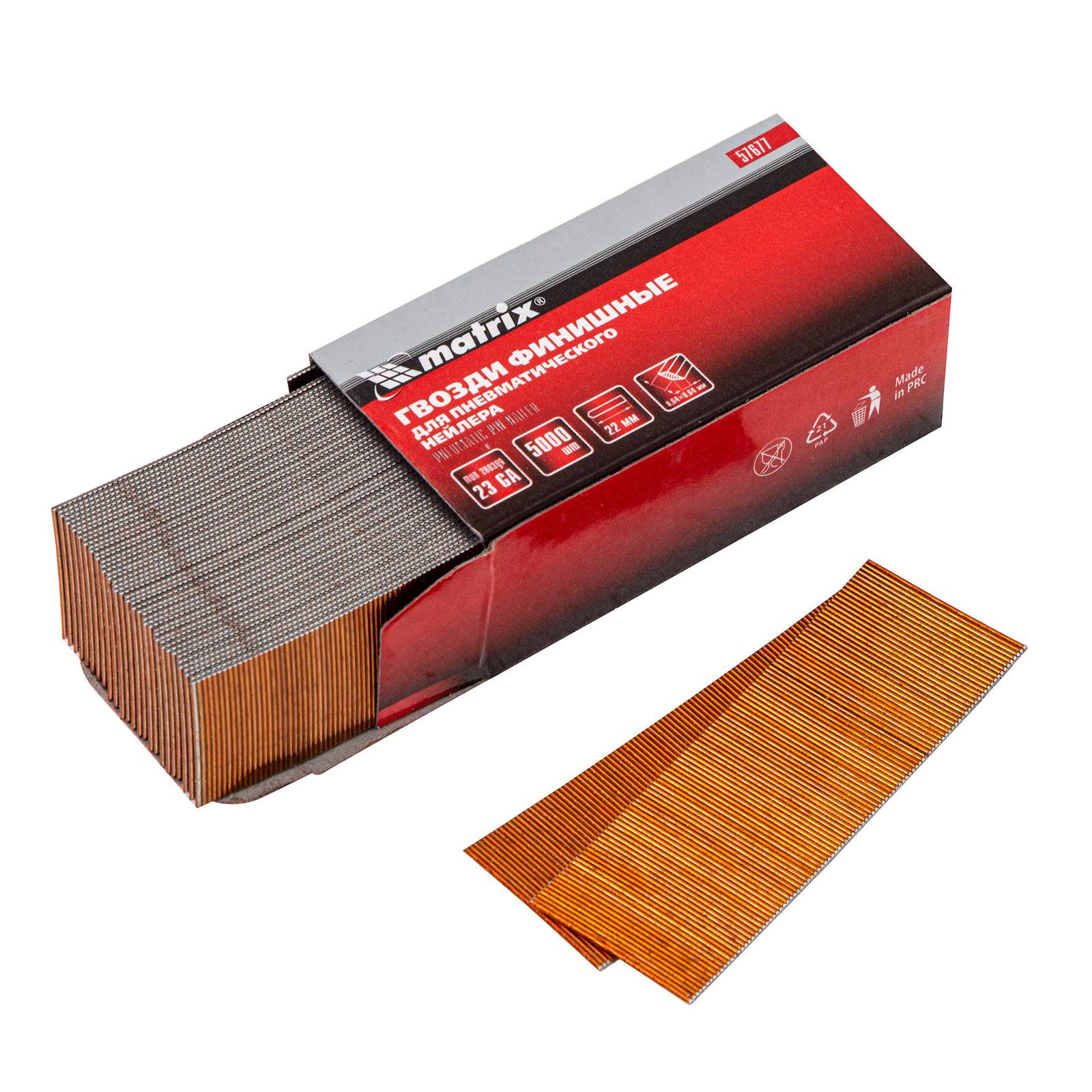 Гвозди финишные, (шпильки) 23GA для пневматического нейлера финишного D 0.64 мм, длина 22 мм, 5000 шт Matrix