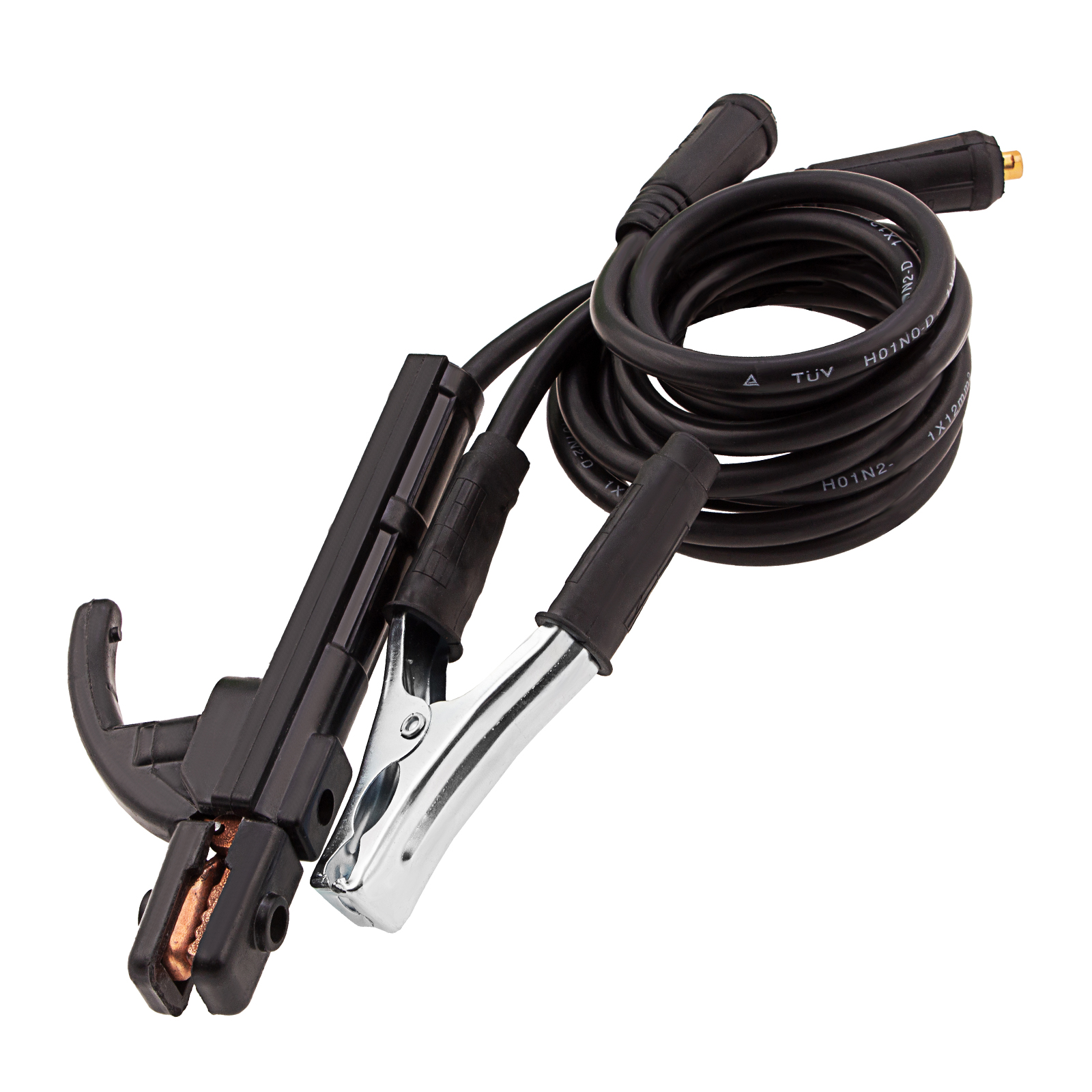 - Полный комплект поставки — кабель с электрододержателем и кабель с зажимом «земля» не придется докупать отдельно.