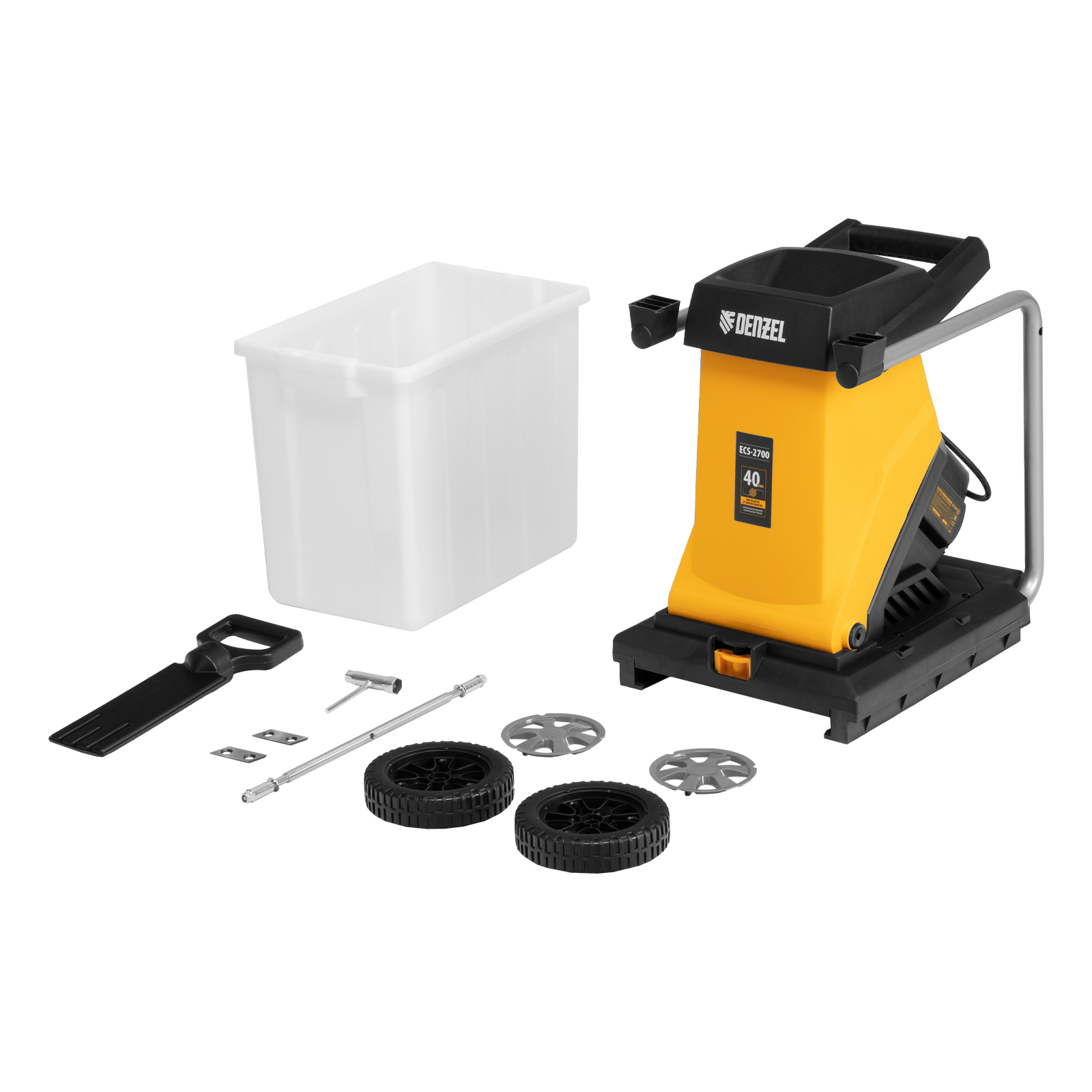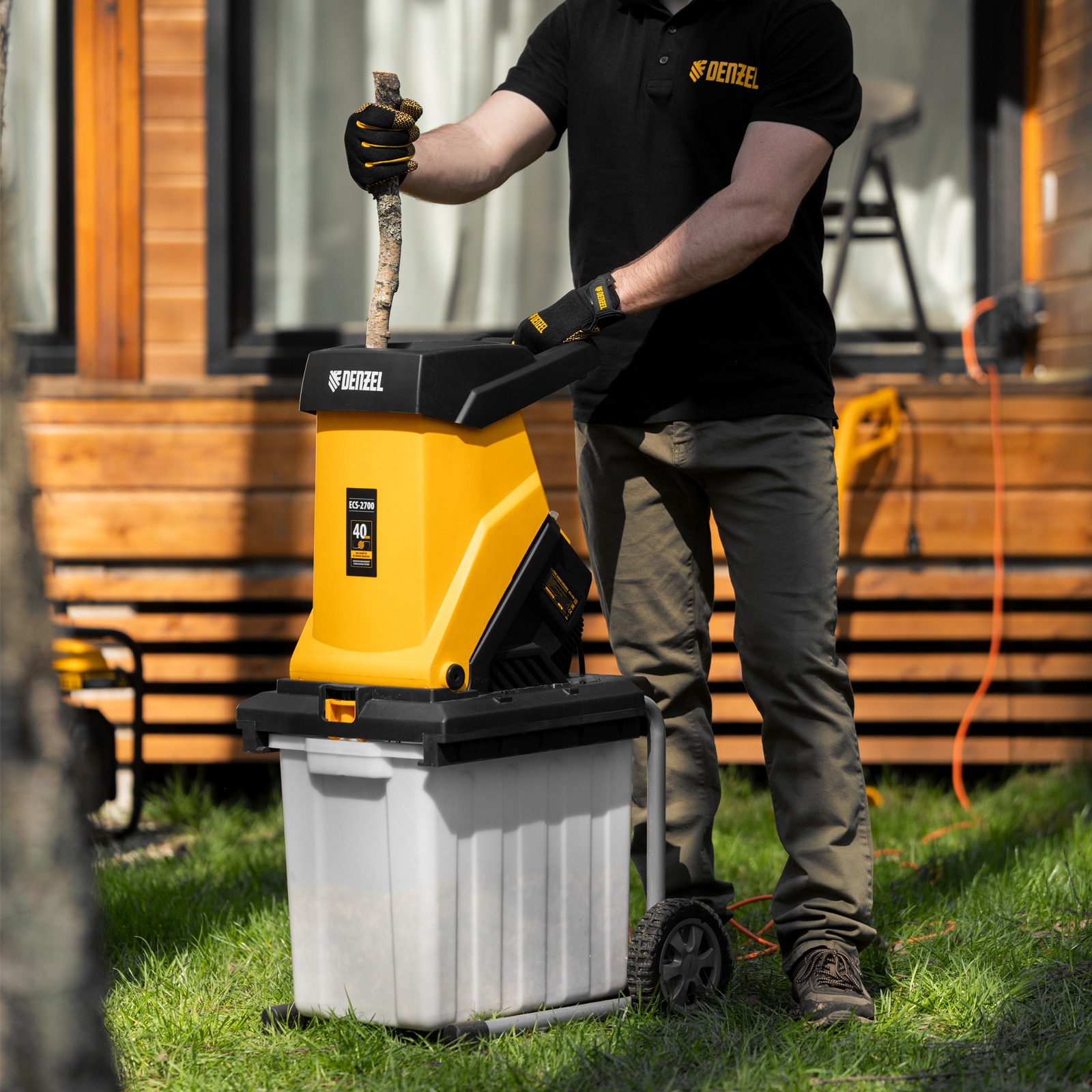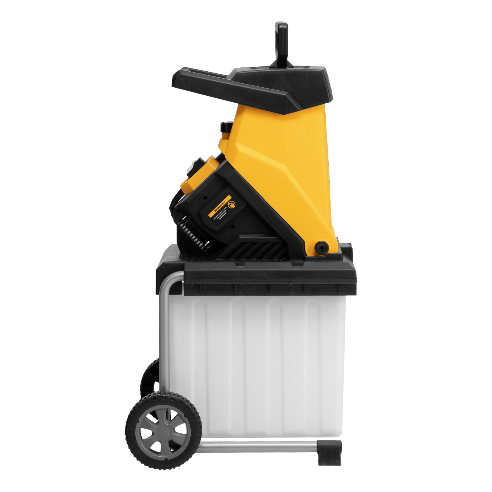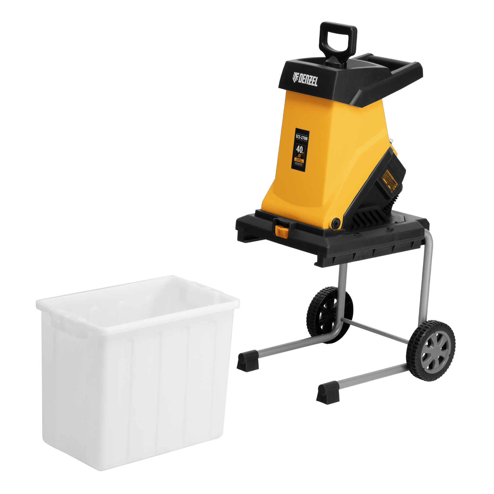 • Маневренность — для удобного перемещения по участку измельчитель оснащен колесами и ручкой.