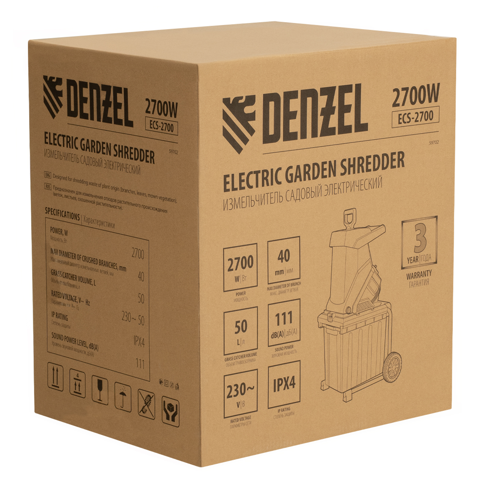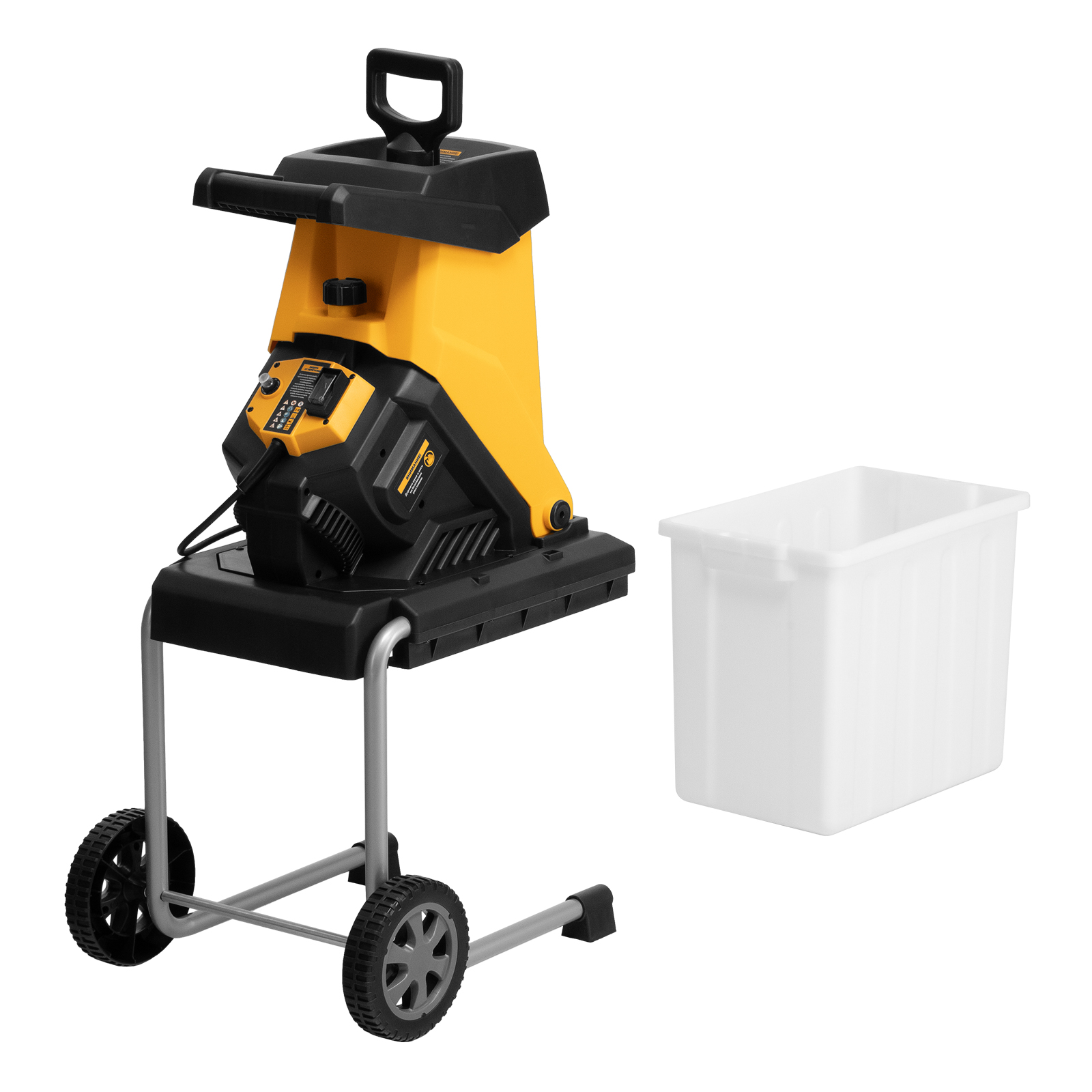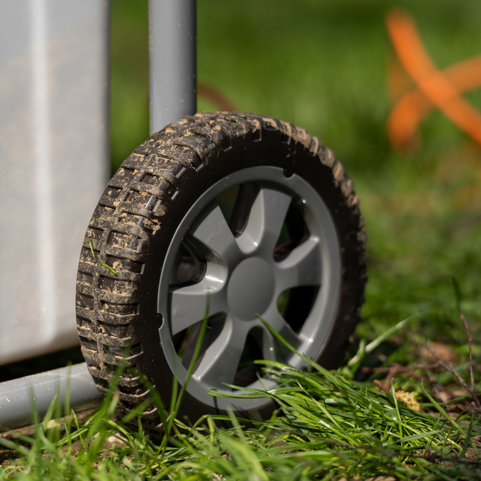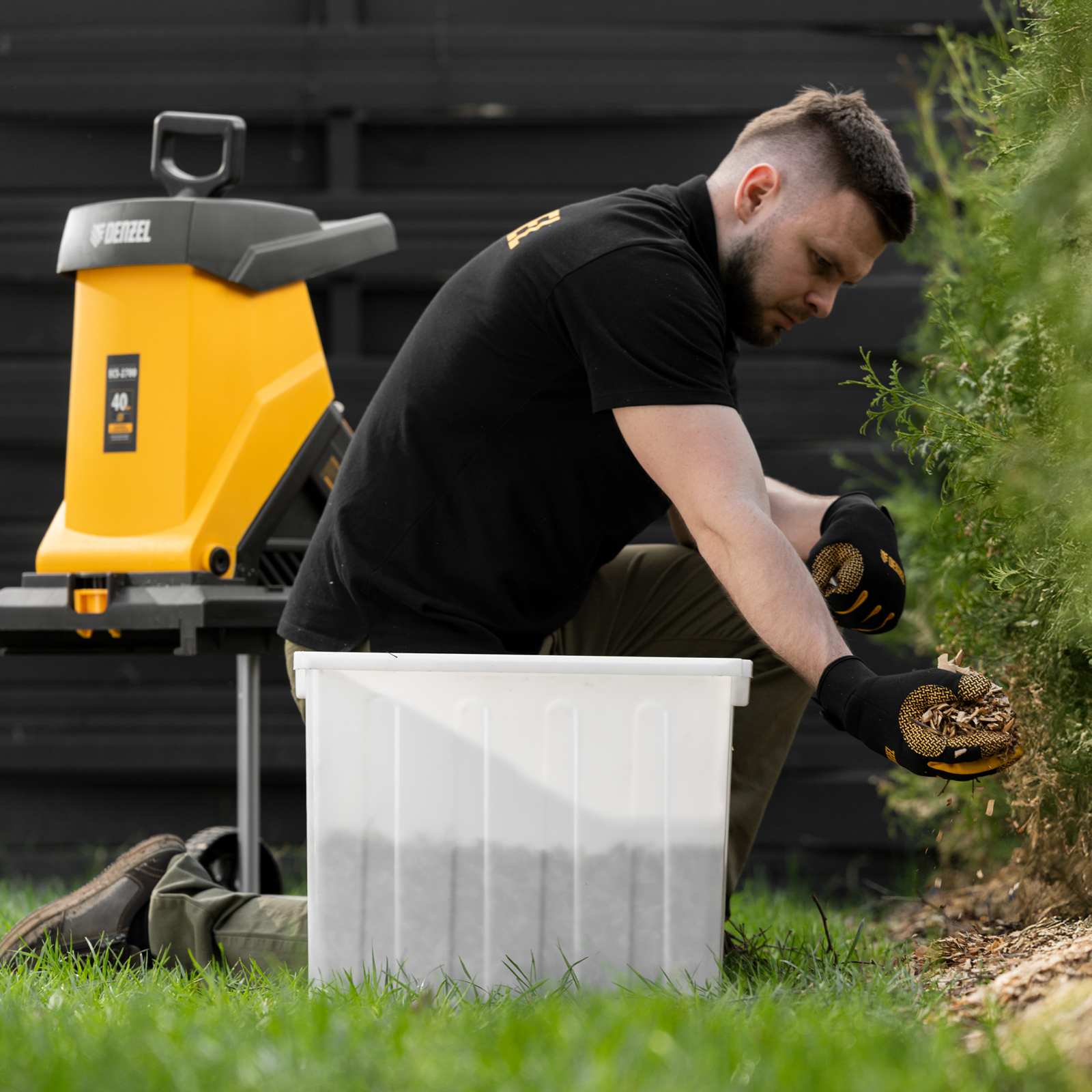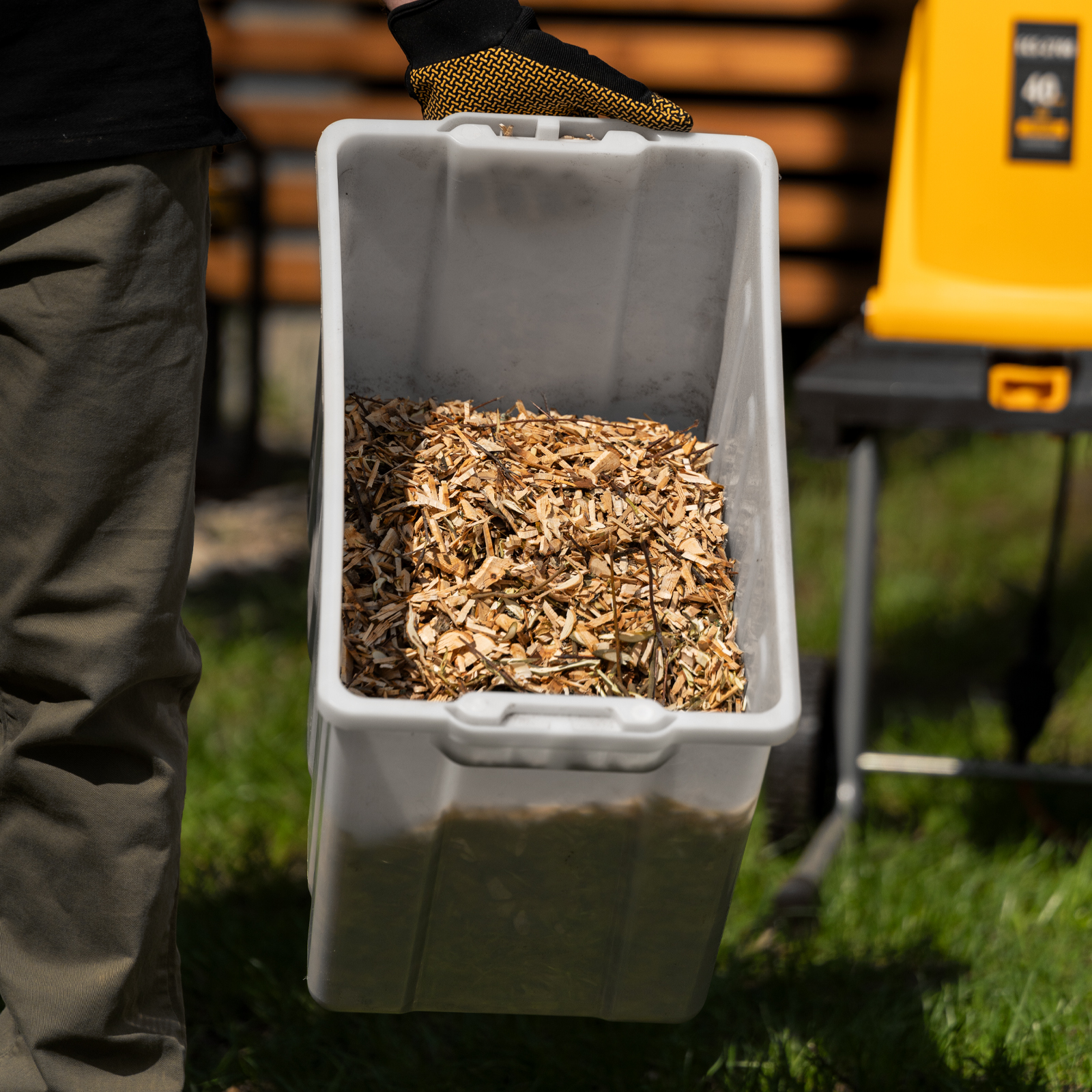 • Маневренность — для удобного перемещения по участку измельчитель оснащен колесами и ручкой.