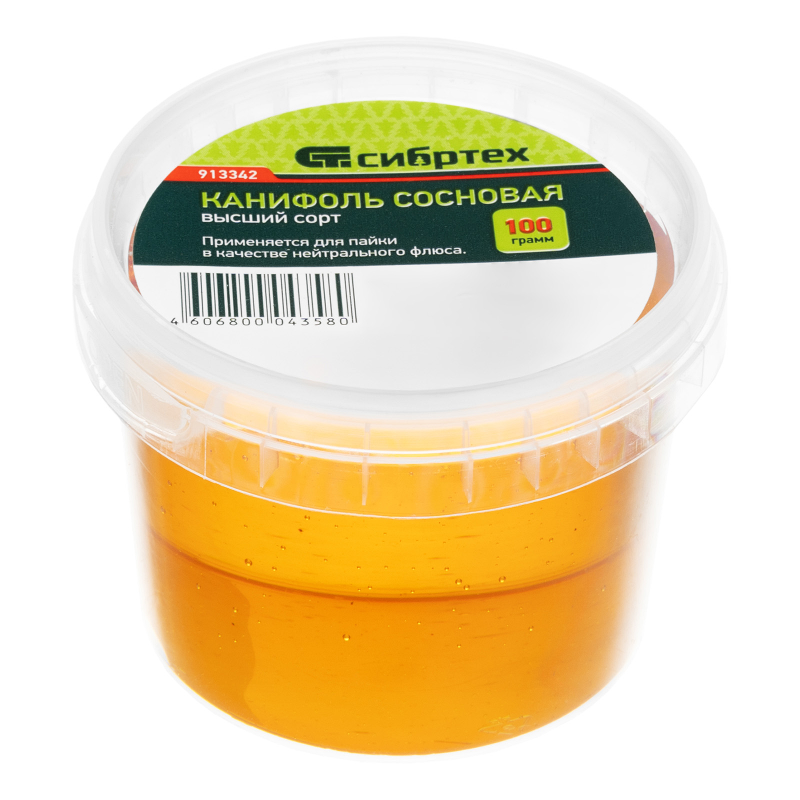Канифоль высшего качества Сибртех 913342 в банке объемом 100 г, изготовленная в соответствии с ГОСТ 19113-84, — нейтральный флюс на основе сосновой смолы. Используется для пайки проводов и радиодеталей, а также лужения жала паяльника. Удаляет с металлических поверхностей оксидные пленки и повышает надежность паяного соединения. Пригодится радиолюбителям, а также будет полезна в быту.