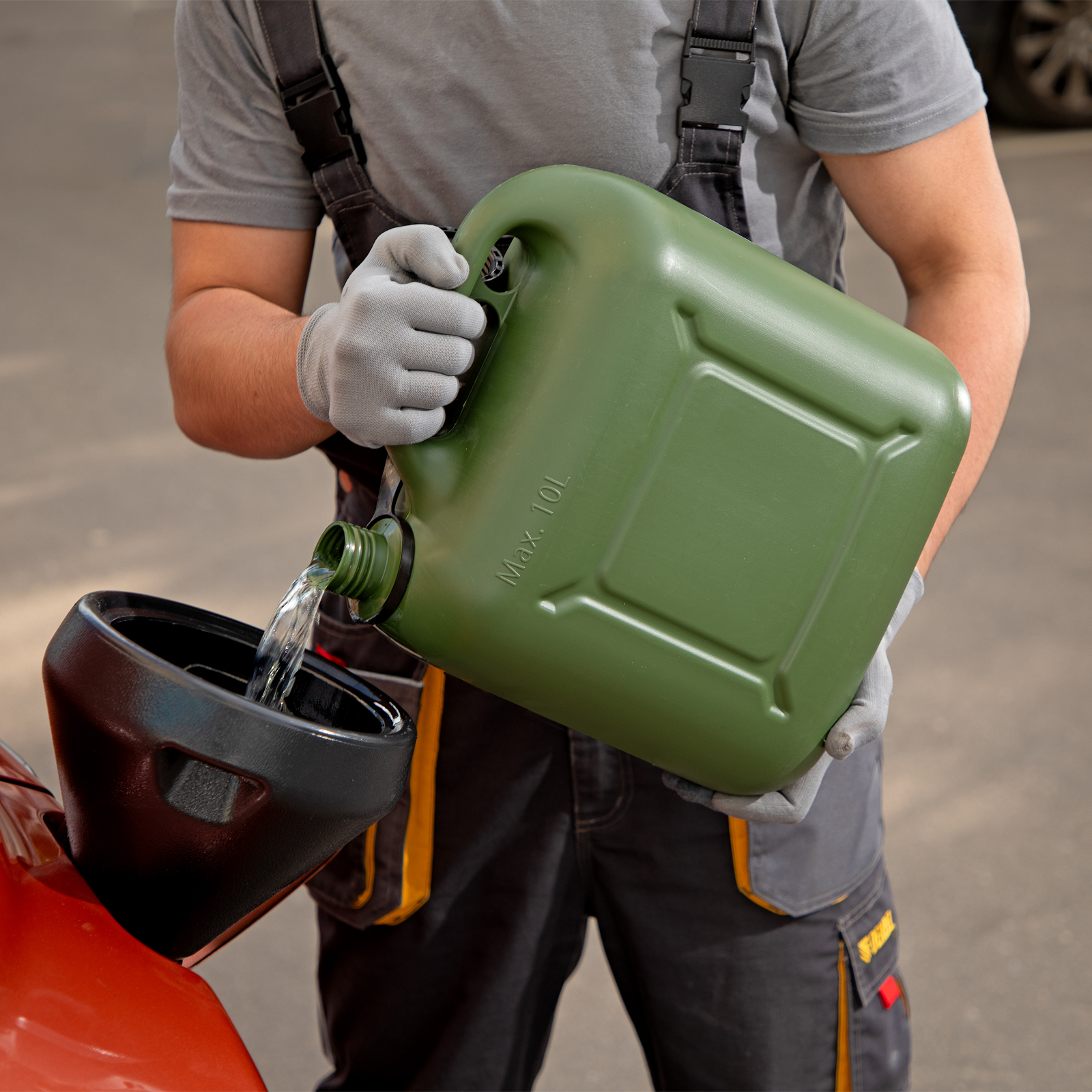 - Комфортное использование — специальный носик позволяет переливать бензин без риска испачкаться.