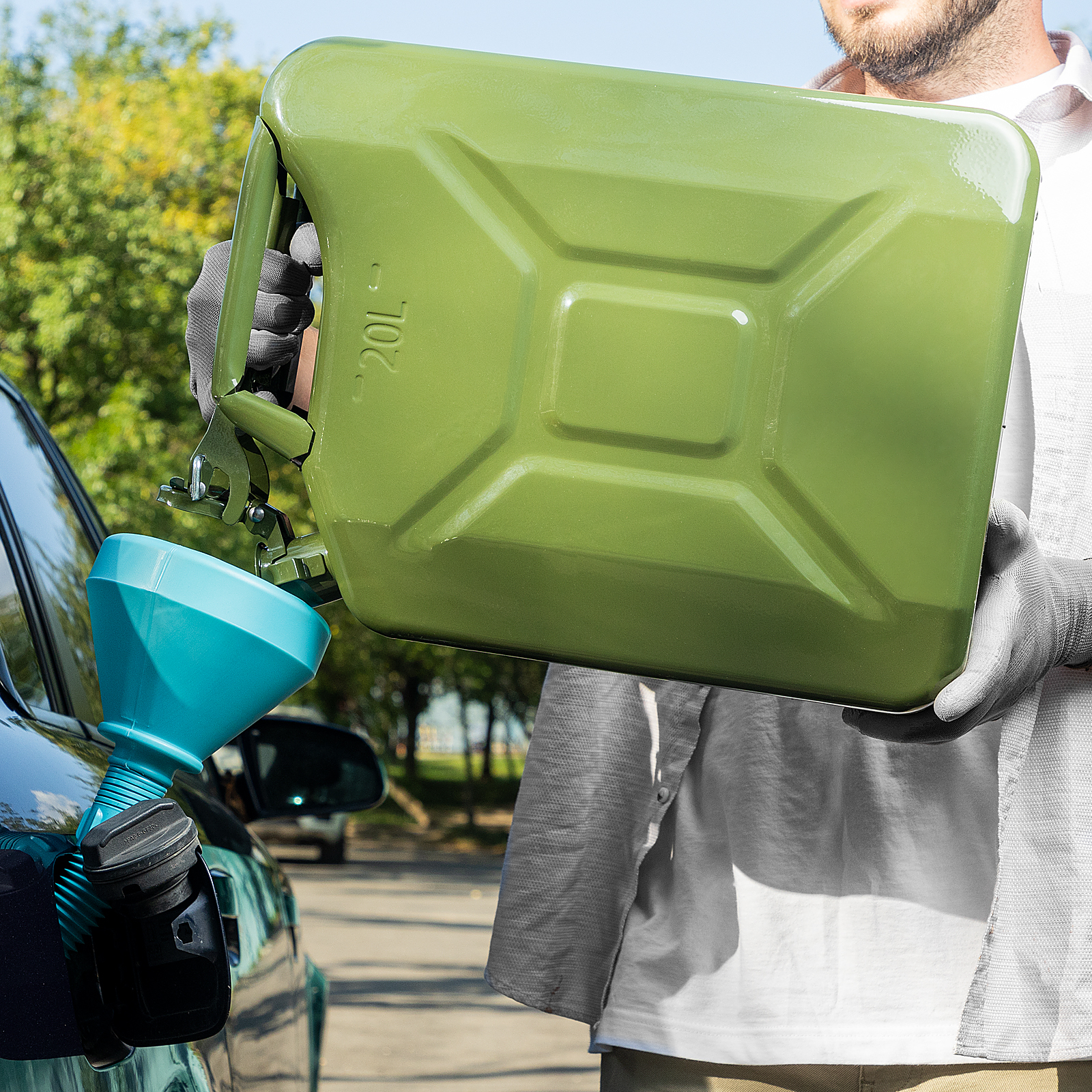 - Продуманная конструкция — тройная ручка обеспечивает удобство при переноске канистры и устойчивость при ее использовании.