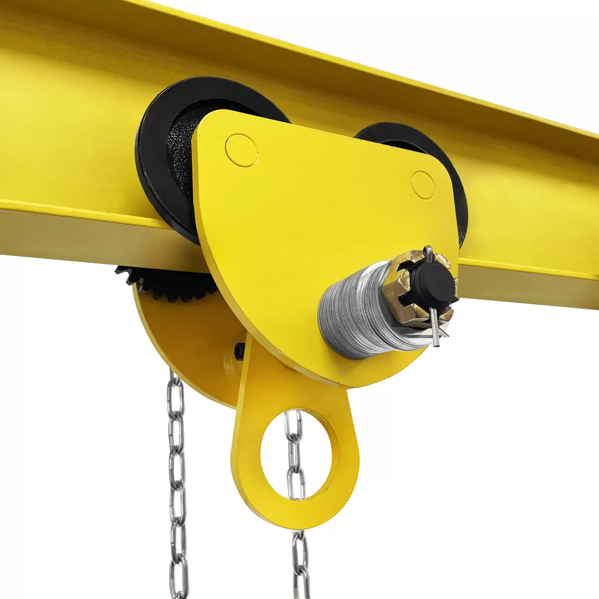 Устанавливается на двутавровую балку для подвеса тали за крюк и перемещения груза вдоль двутавра