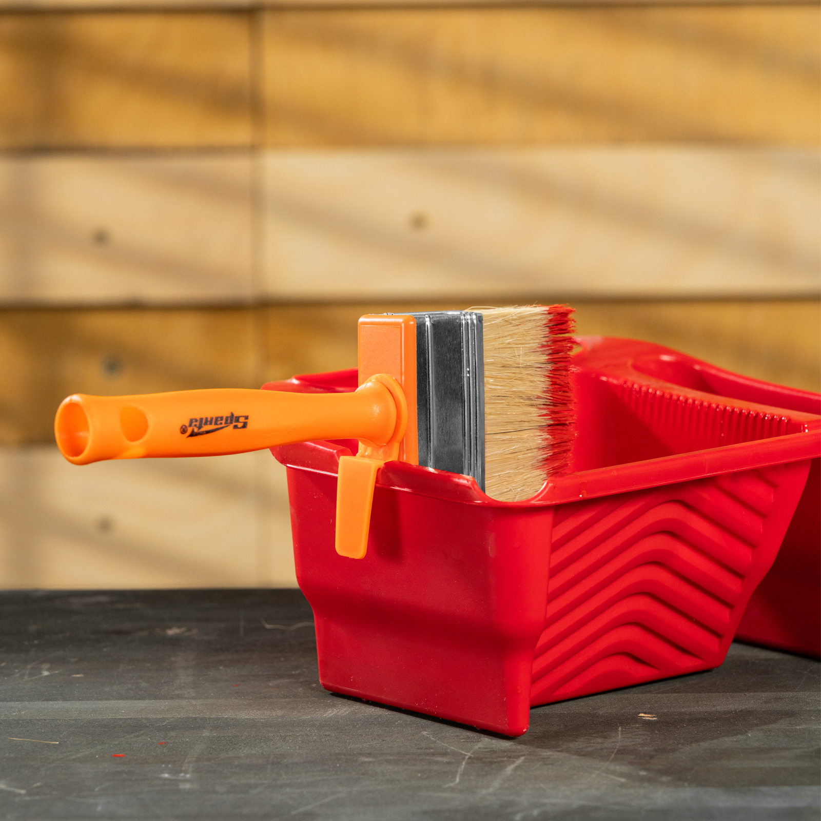 - Продуманная конструкция — во время перерыва в работе кисть можно закрепить на краю емкости с краской.