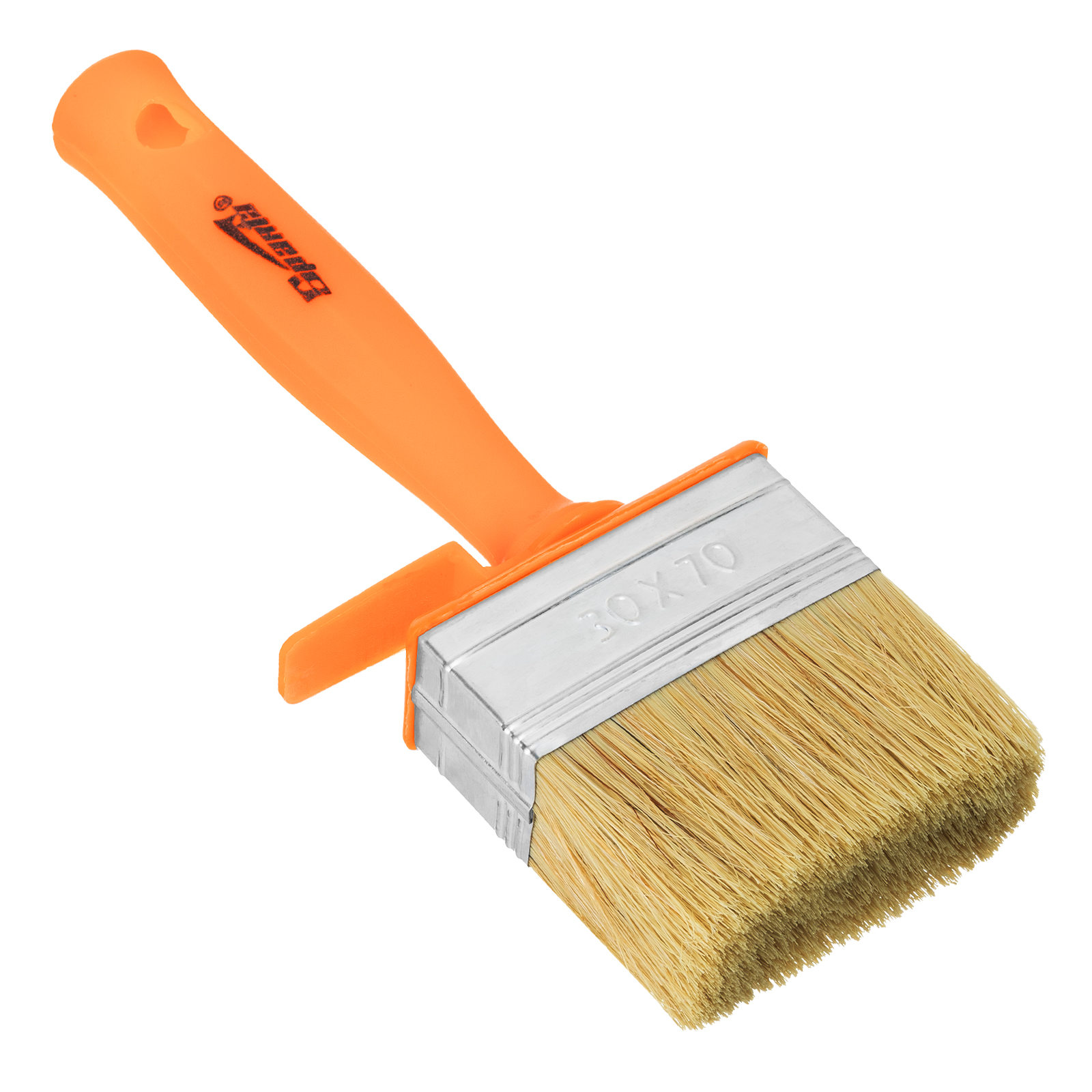 Кисть-ракля Sparta 841066 толщиной 30 мм и шириной 70 мм, с натуральной щетиной, пластмассовыми корпусом и ручкой, используется для малярных работ на участках большой площади, поэтому удобна для обработки стен, потолков и фасадов. Натуральная щетина устойчива к химическому воздействию, поэтому не деформируется и сохраняет упругость при работе с ЛКМ на водной основе, грунтовками, масляными красками и клеящими составами.