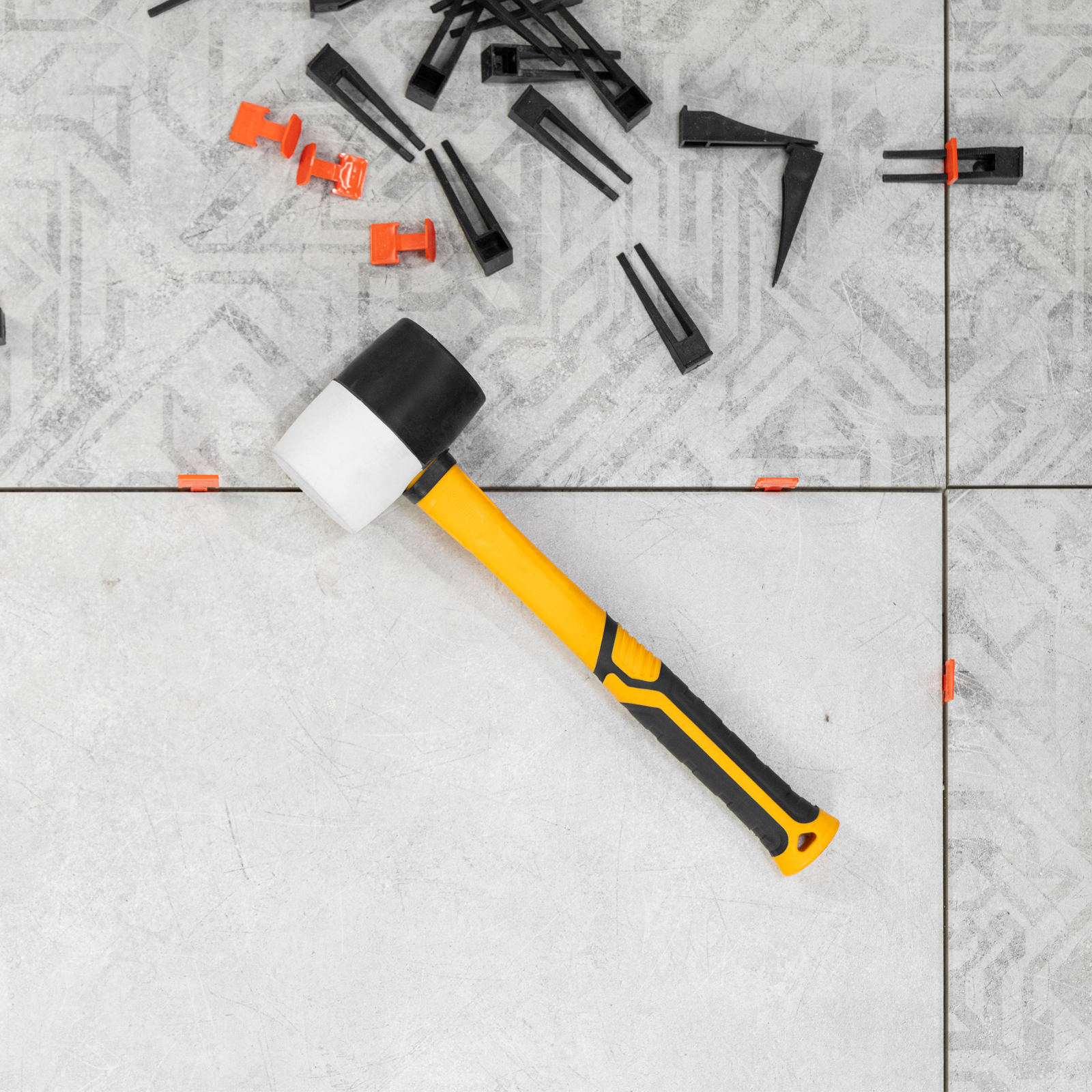 - Безопасная работа со светлыми материалами — часть бойка из белой резины не оставляет следов.
