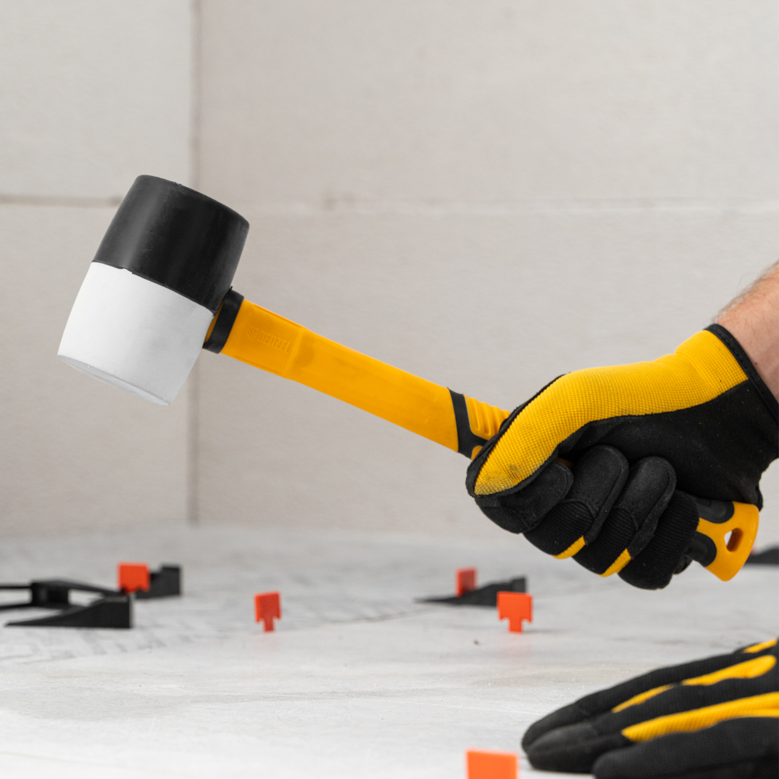 Киянка резиновая, 450 г, черно-белая, фибергласовая рукоятка c TPR покрытием Denzel
