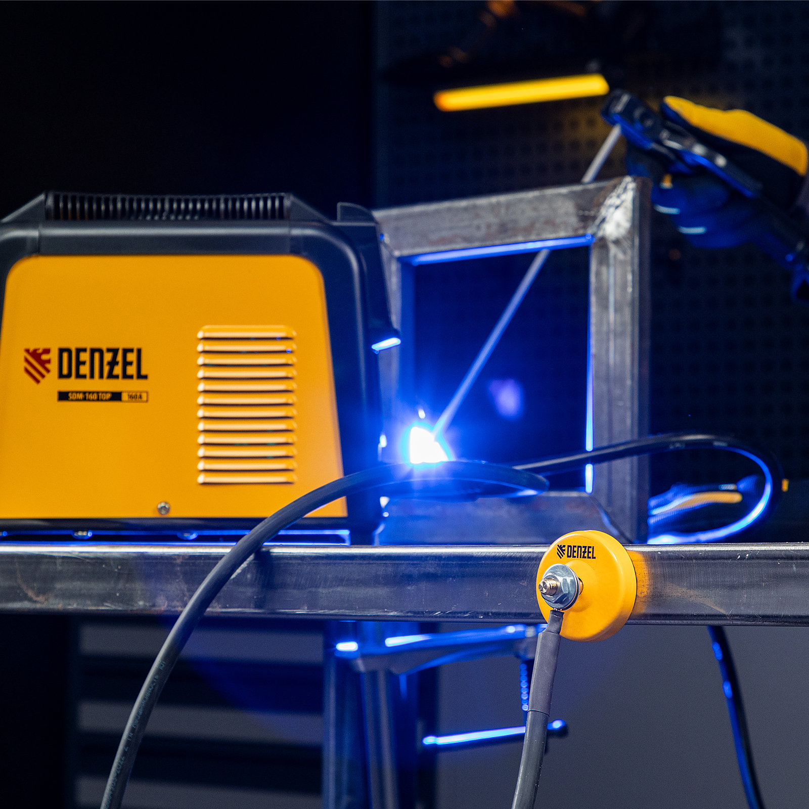 - Простота и удобство использования — для применения магнитной клеммы не требуется специальных навыков, достаточно зафиксировать ее на рабочей поверхности, и можно приступать к сварке.