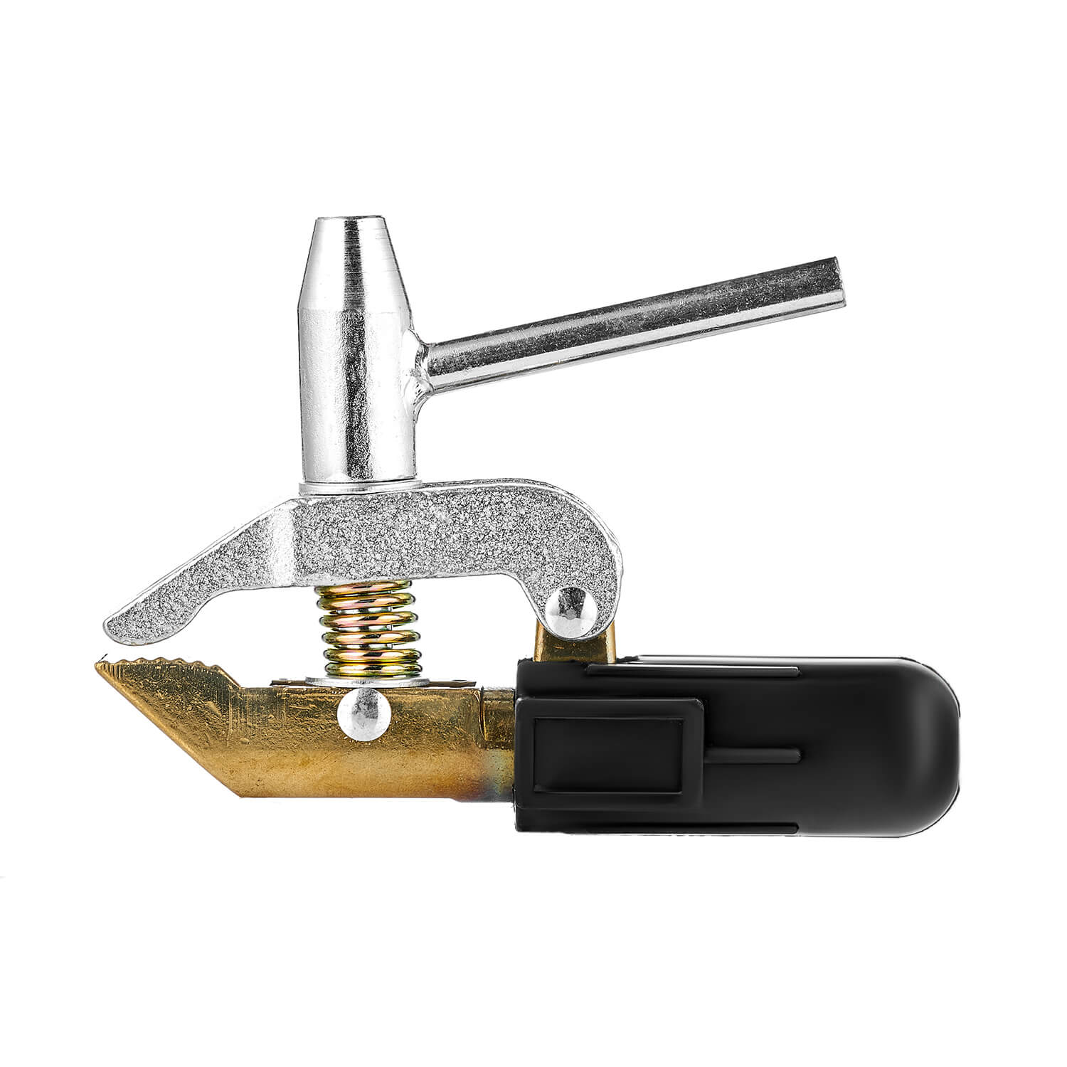 Клемма заземления КЗ-55 рассчитана на сварочный ток до 500 Ампер. Гарантирует плотный контакт в месте подключения за счет губок, поджимаемые ручкой на резьбовом соединении М10х1,5. Предназначена только для работы с электросварочным или плазменным аппаратом. Струбцина оснащена прорезиненной железной ручкой.