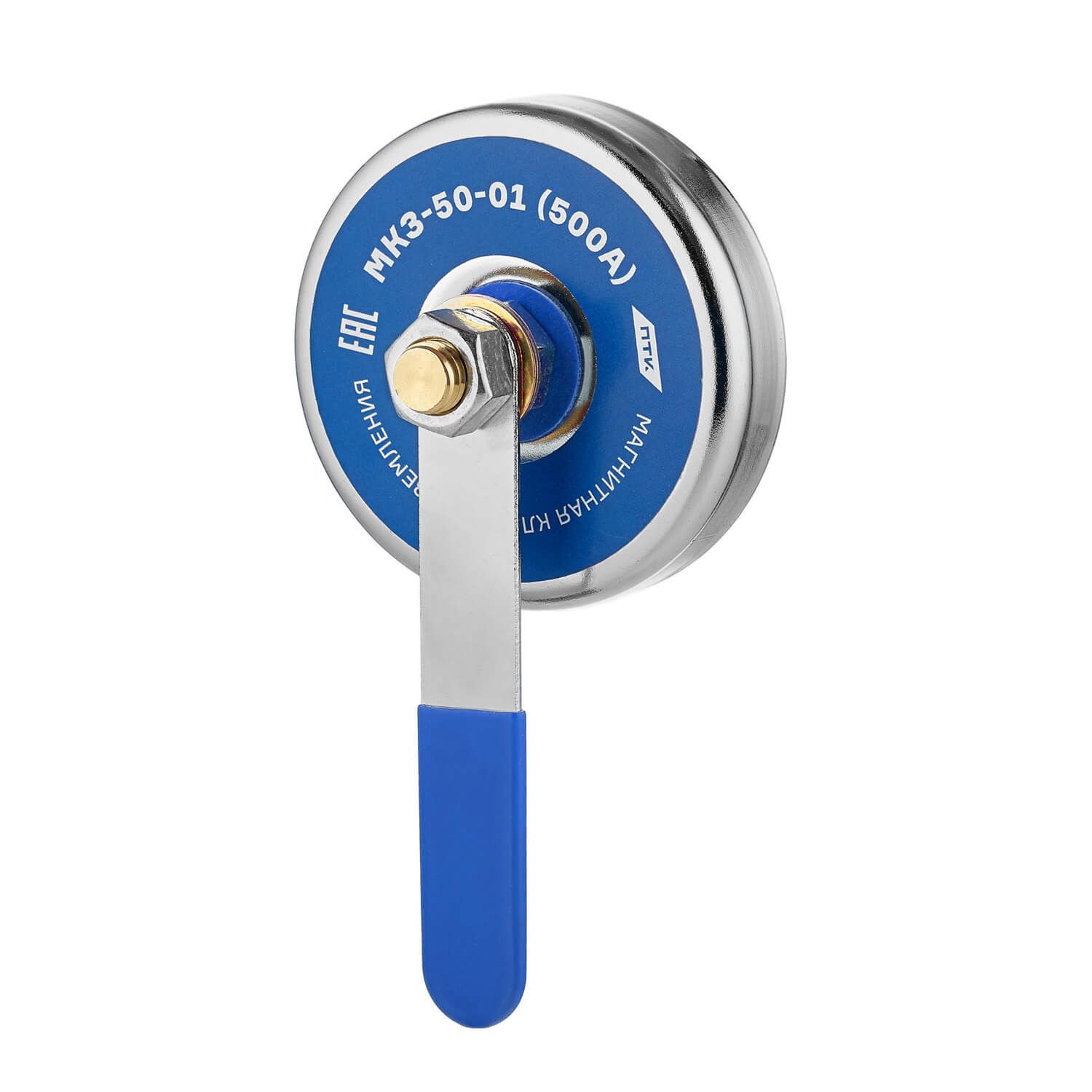 Магнитная клемма заземления МКЗ-50-01 рассчитана на сварочный ток до 500А. Крепится к обрабатываемому листу или сварочному столу. Предназначена только для работы с электросварочным или плазменным аппаратом.