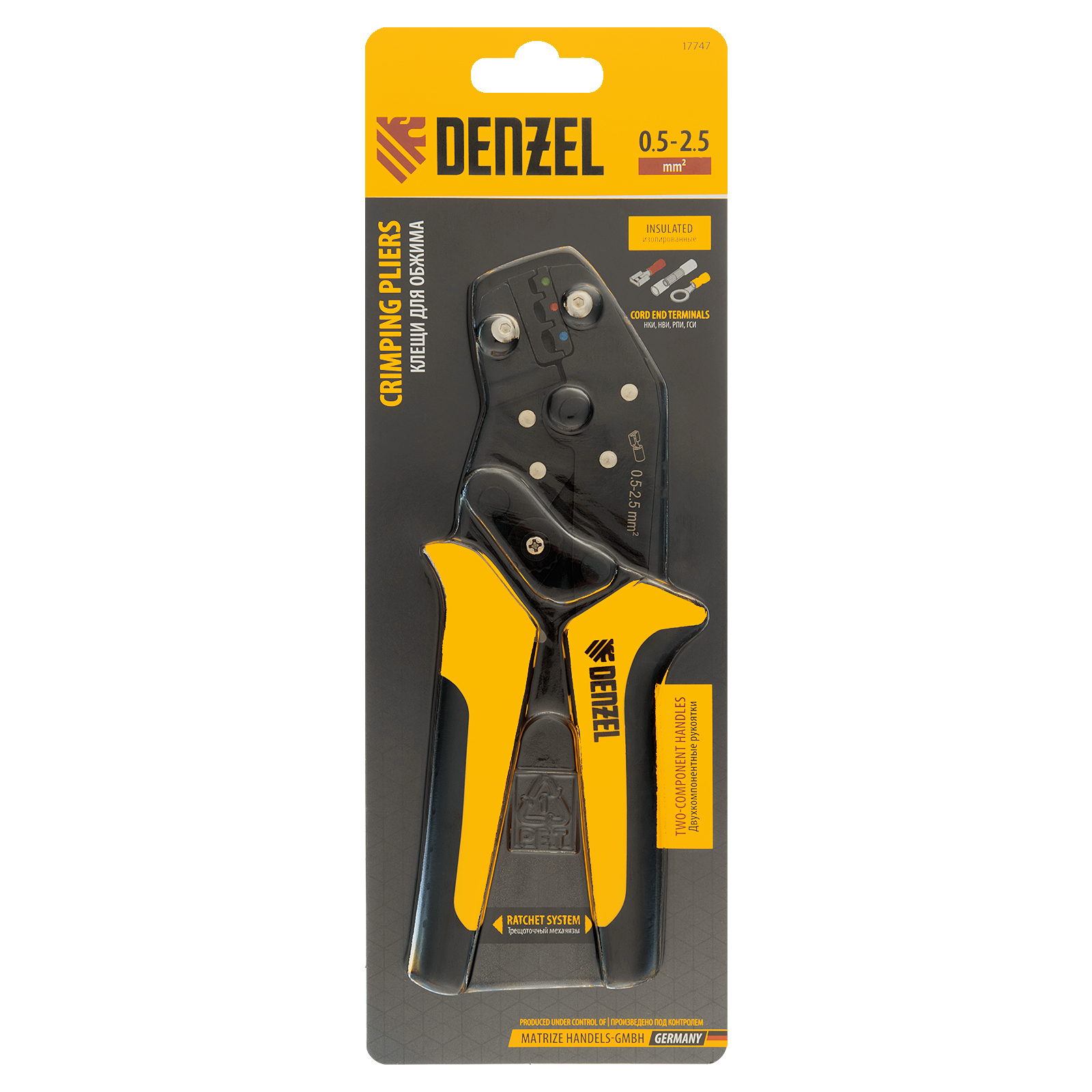Клещи для обжима изолир. наконечников НКИ и НВИ, разъемов РПИ, гильз ГСИ, 0,5 - 2,5 мм2 Denzel