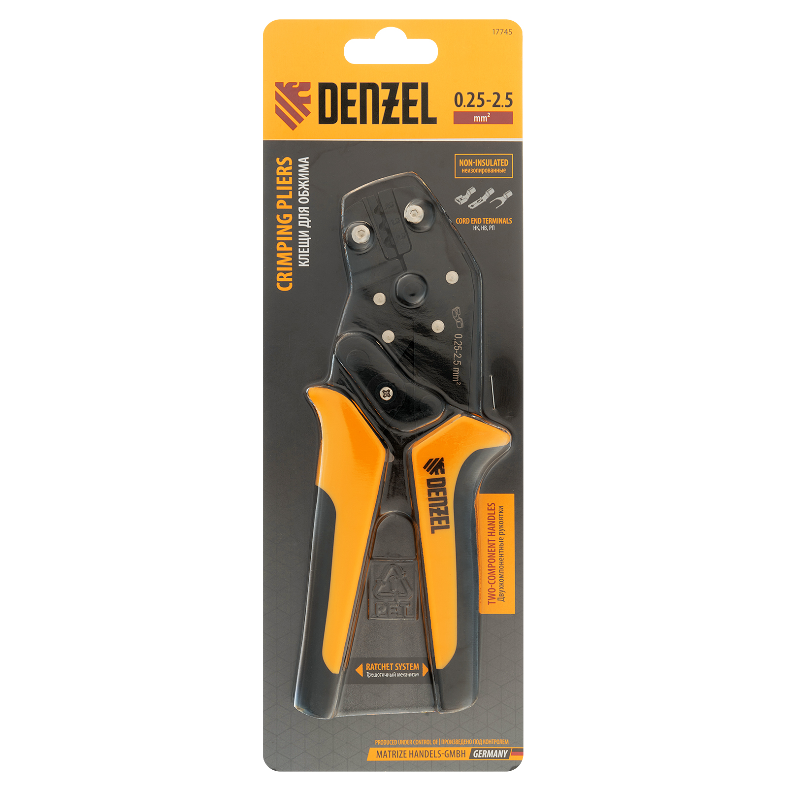 Клещи для обжима неизолированных наконечников НК и НВ, разъемов РП, 0,25 - 2,5 мм2 Denzel