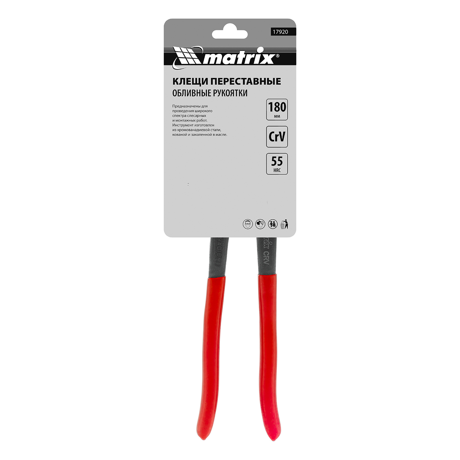 Клещи переставные 180 мм, хром-ванадий, обливные рукоятки Matrix в Казани