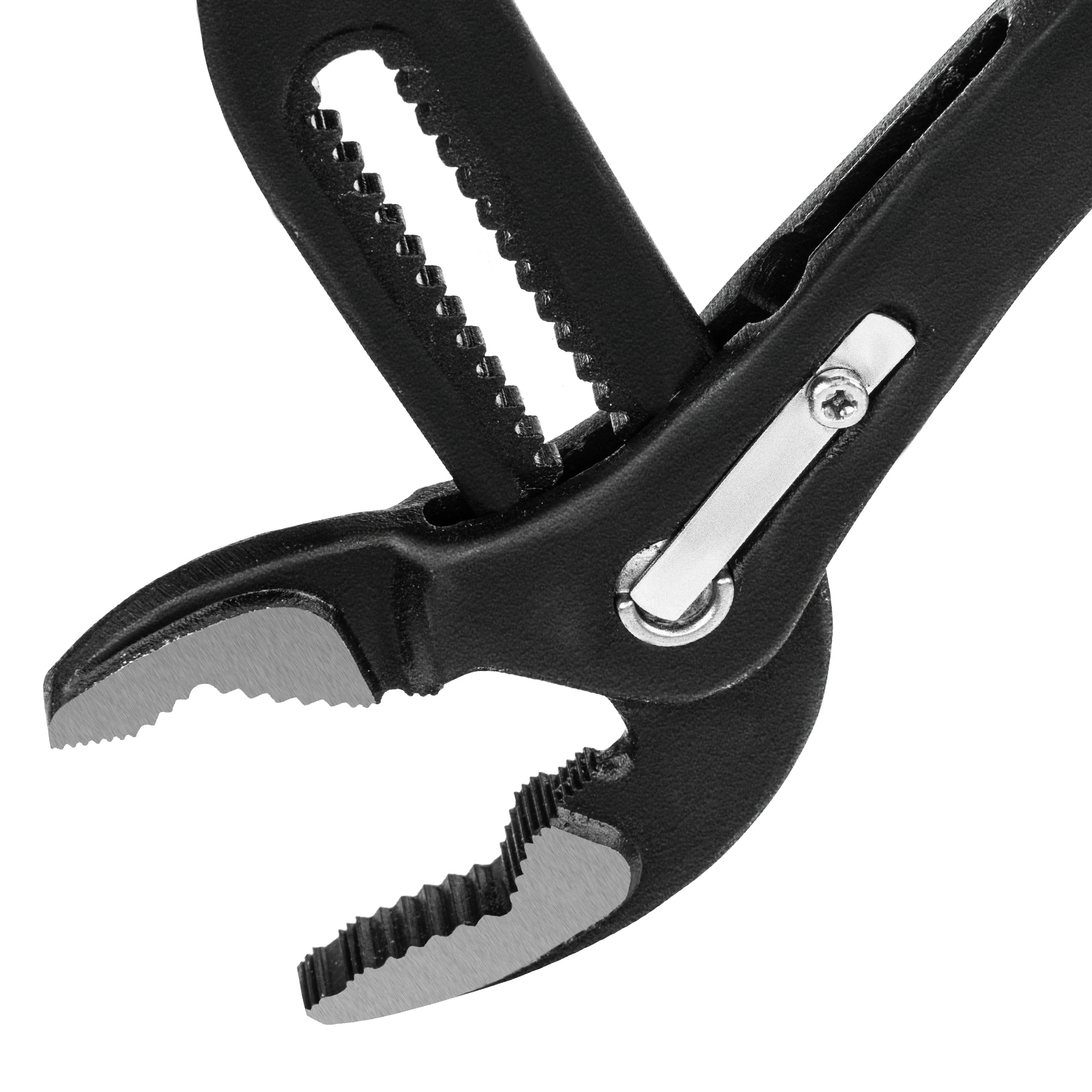 Переставные клещи Matrix 17927 длиной 300 мм, выполненные из хромованадиевой стали, с кнопочным механизмом и обливными рукоятками, используются для проведения монтажных и слесарных работ. Универсальный инструмент заменяет ключи различных размеров и применяется для фиксации заготовок, откручивания гаек, зажима и удержания труб диаметром до 64 мм.