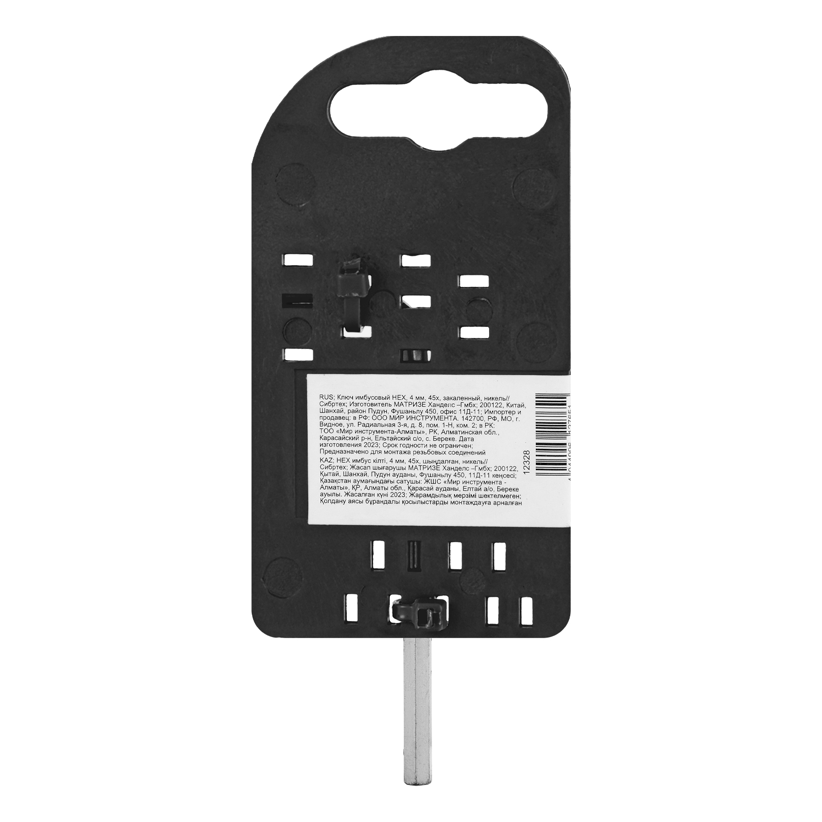 Ключ имбусовый HEX, 4 мм, 45x, закаленный, никель Сибртех