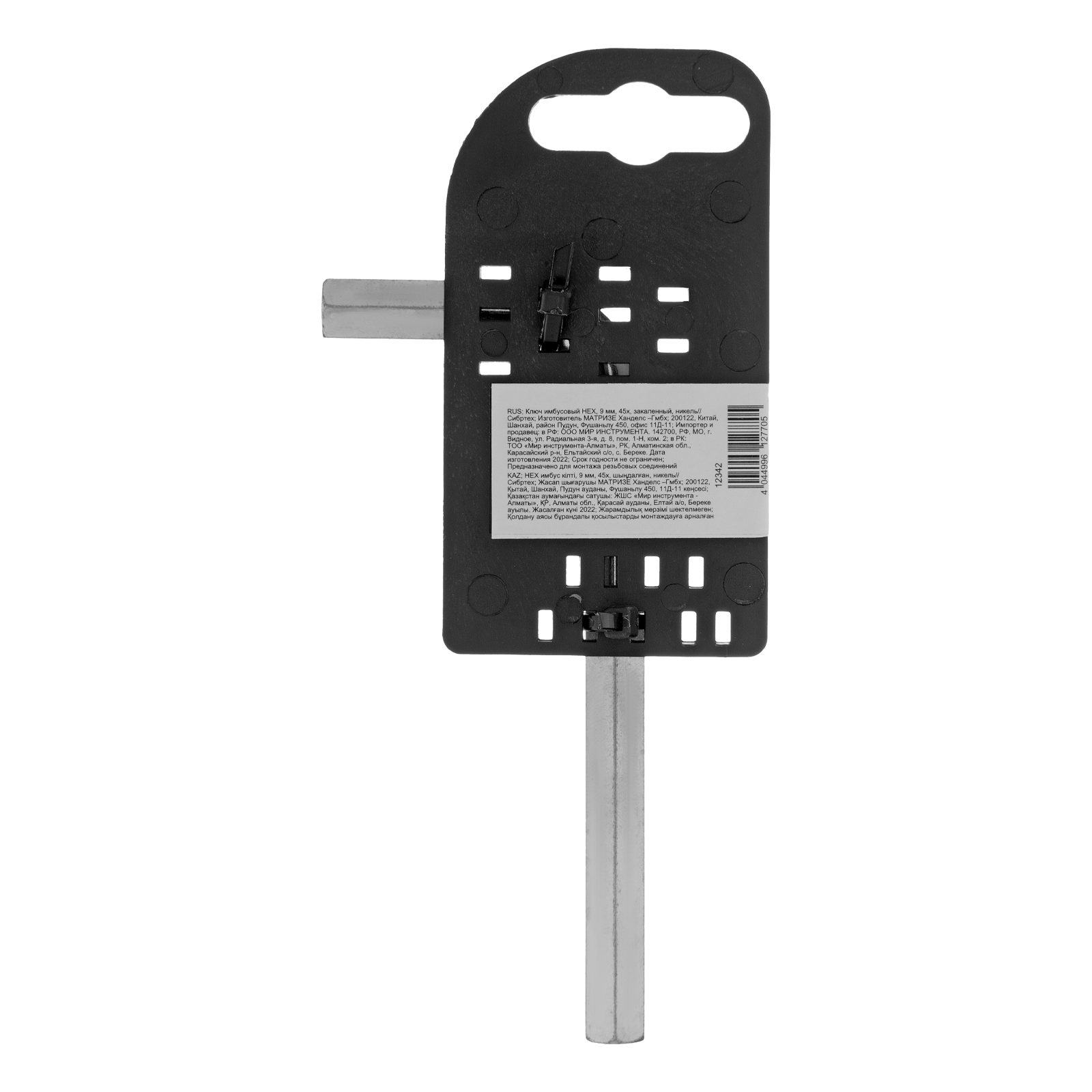 Ключ имбусовый никелированный Сибртех 12342 размером 9 мм, из закаленной стали 45Х, используется для монтажа и демонтажа резьбового крепежа с шестигранным шлицем HEX. Пригодится для сборки мебели, ремонта бытовой техники, велосипедов и автомобилей.