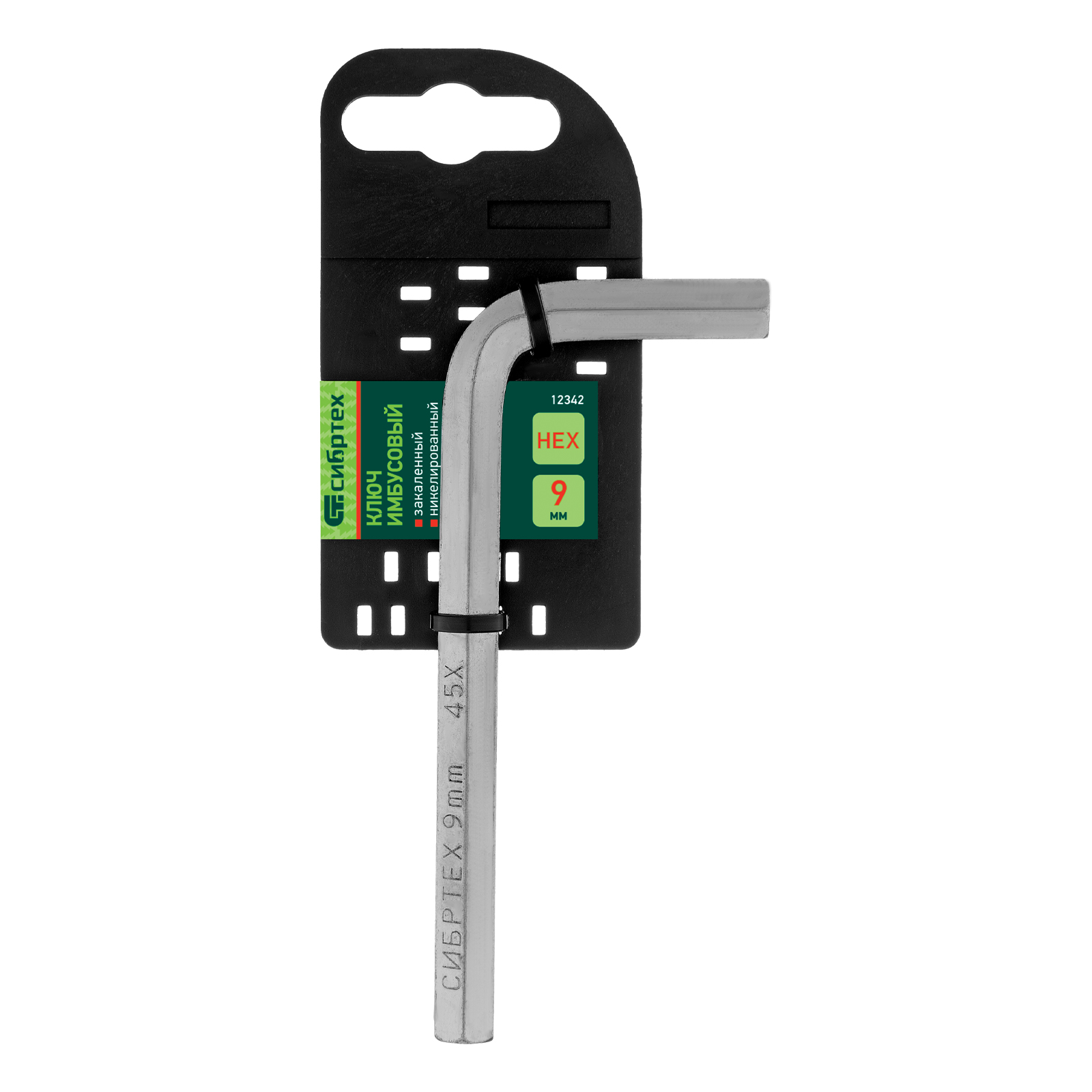 Ключ имбусовый HEX, 9 мм, 45x, закаленный, никель Сибртех