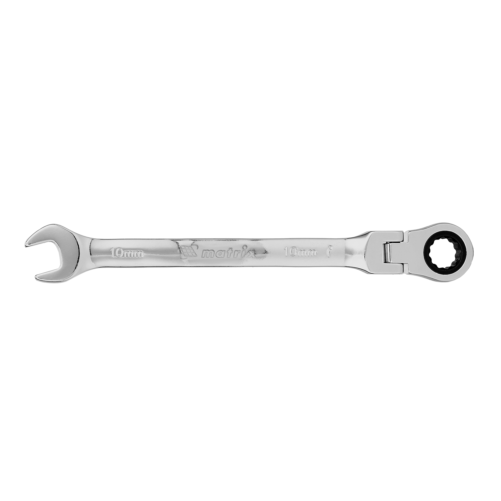 Ключ комбинированный трещоточный, 10 мм, CrV, шарнирный, зеркальный хром Matrix Professional