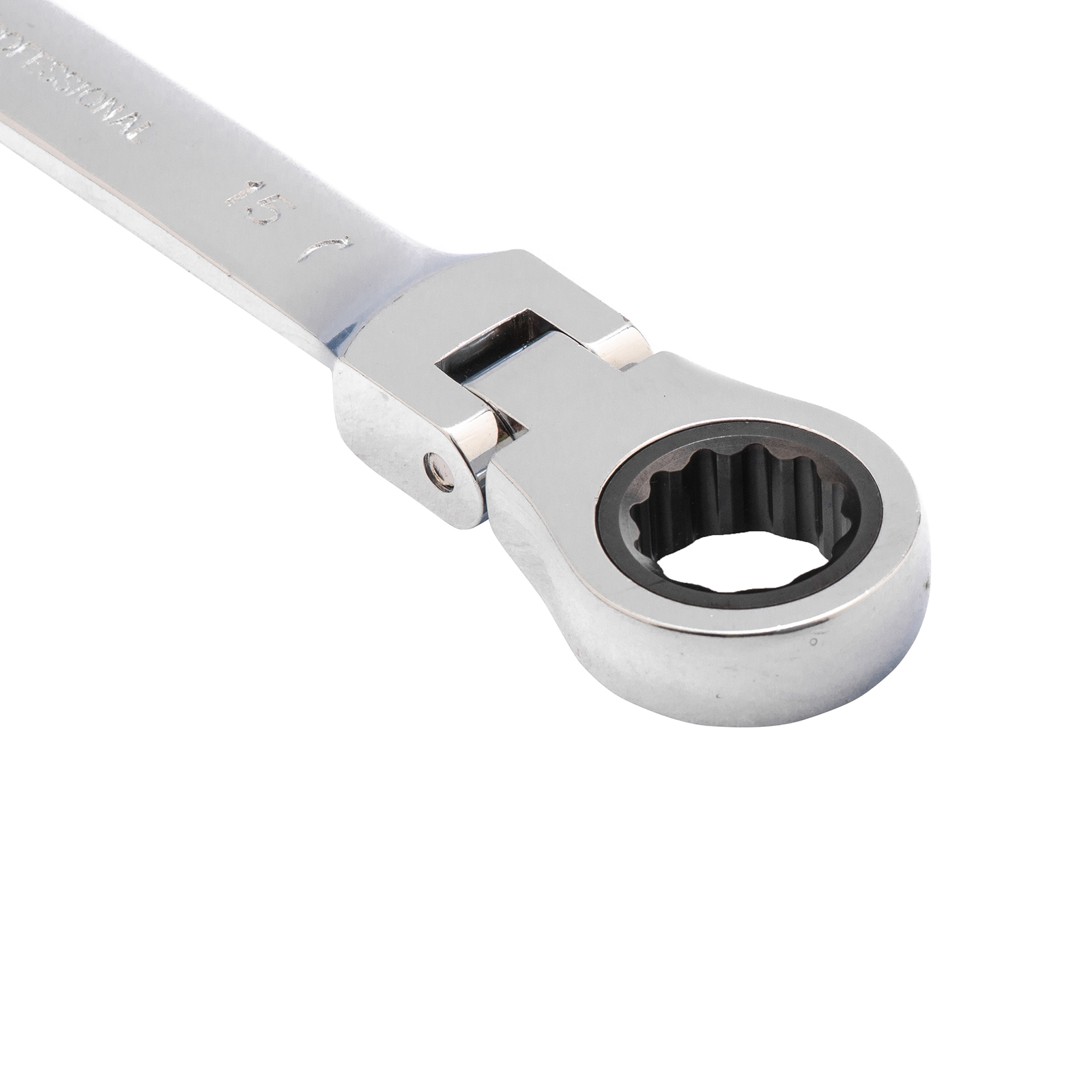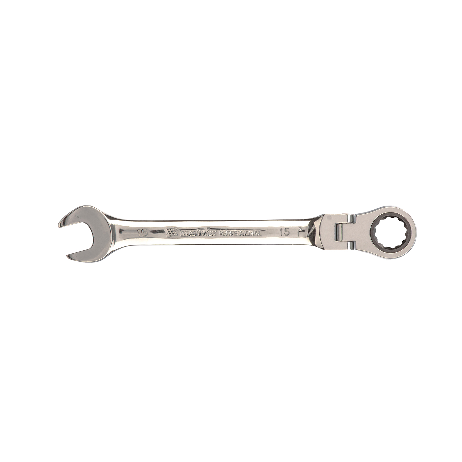 Ключ комбинированный трещоточный, 15 мм, CrV, шарнирный, зеркальный хром Matrix