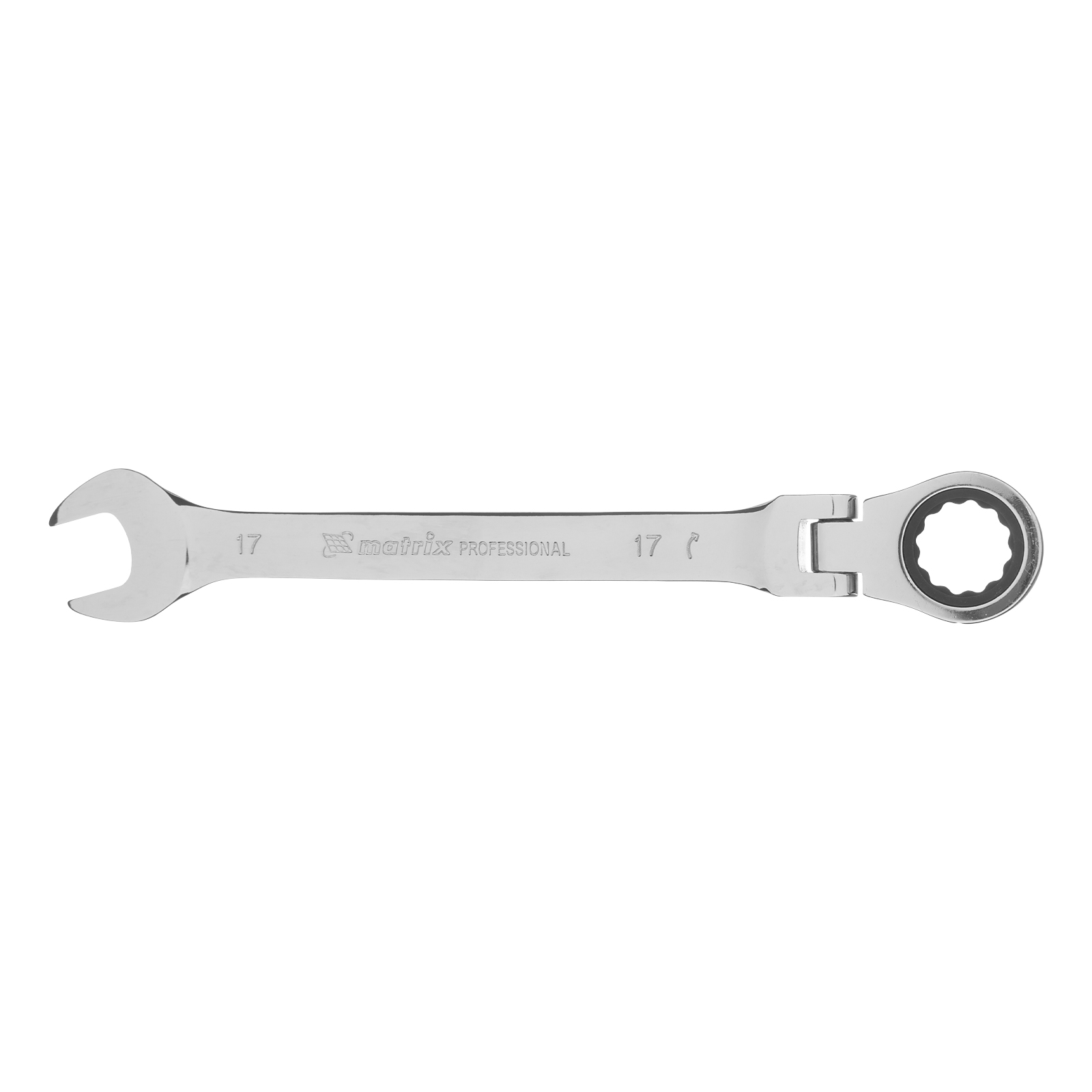 Ключ комбинированный трещоточный, 17 мм, CrV, шарнирный, зеркальный хром Matrix Professional