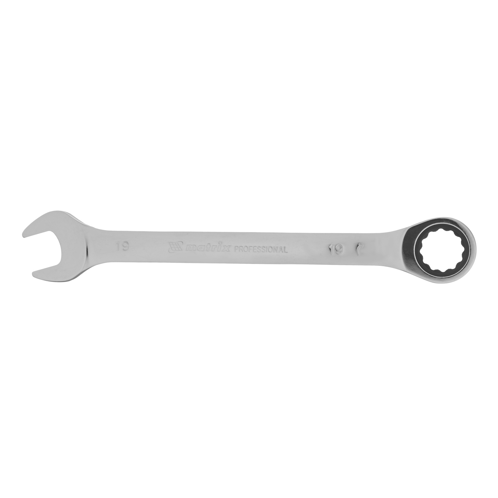 Ключ комбинированный трещоточный, 19 мм, CrV, зеркальный хром Matrix Professional