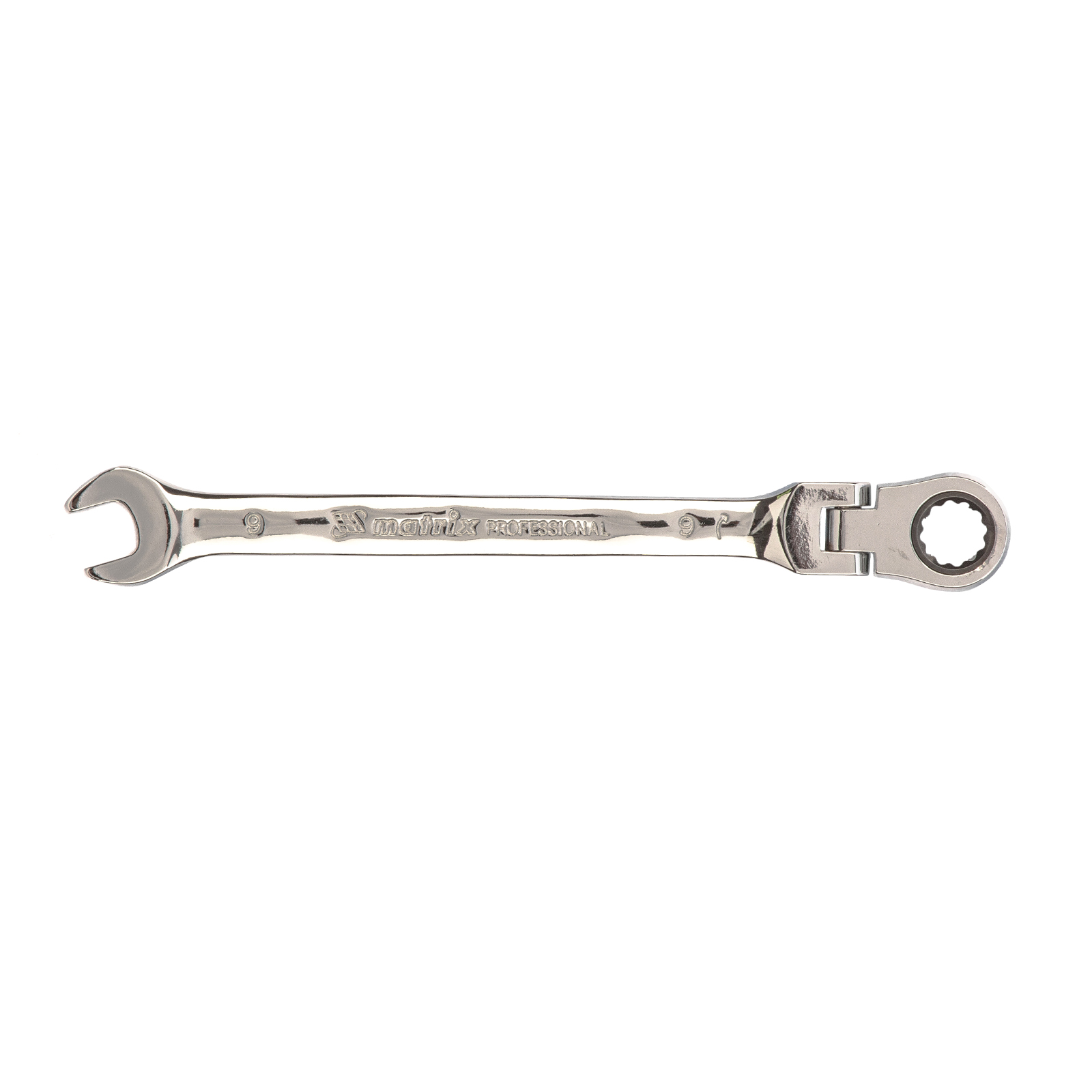 Ключ комбинированный трещоточный, 9 мм, CrV, шарнирный, зеркальный хром Matrix