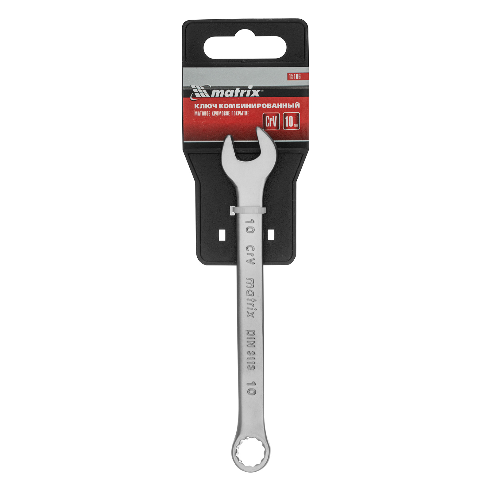Ключ комбинированный, 10 мм, CrV, матовый хром Matrix