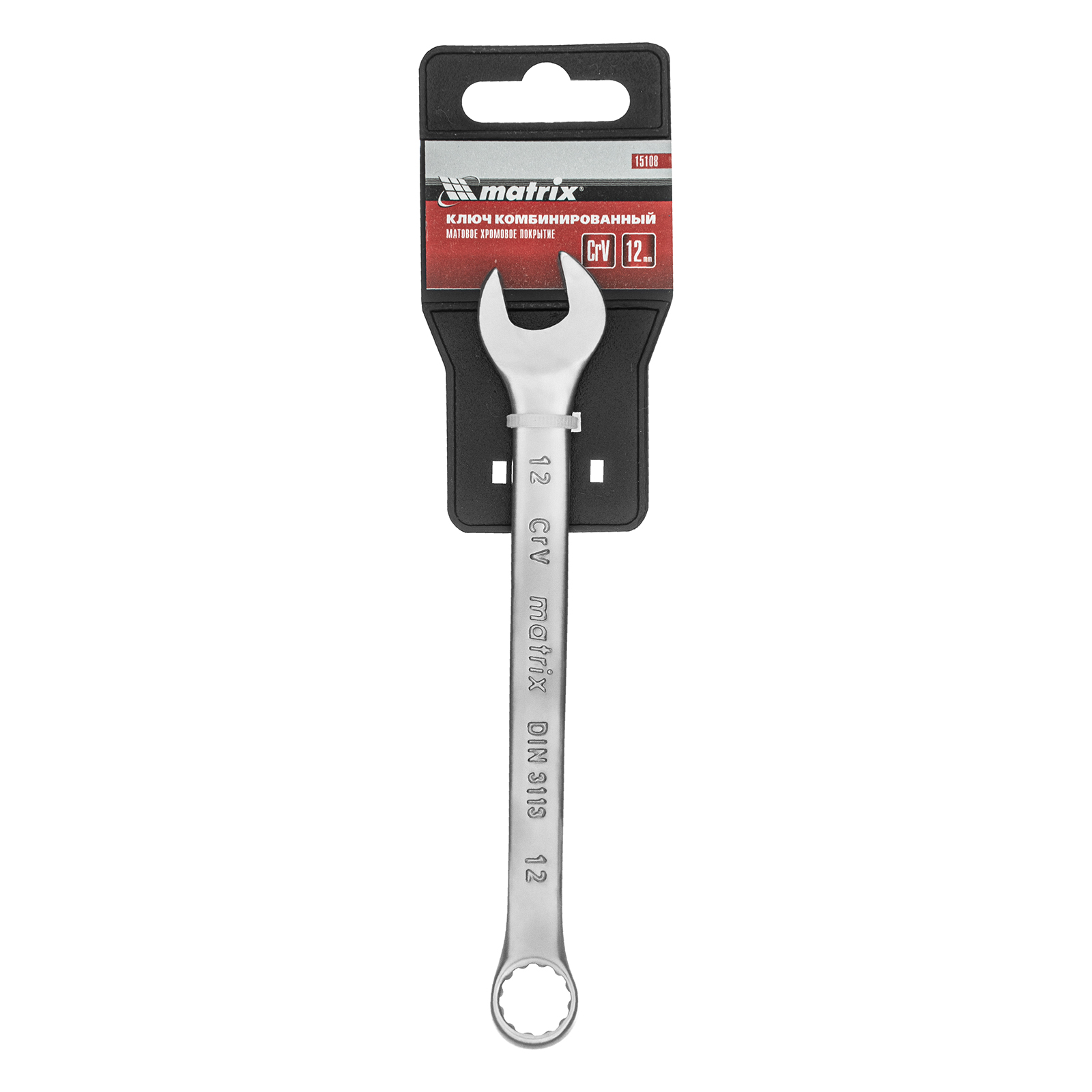 Ключ комбинированный, 12 мм, CrV, матовый хром Matrix