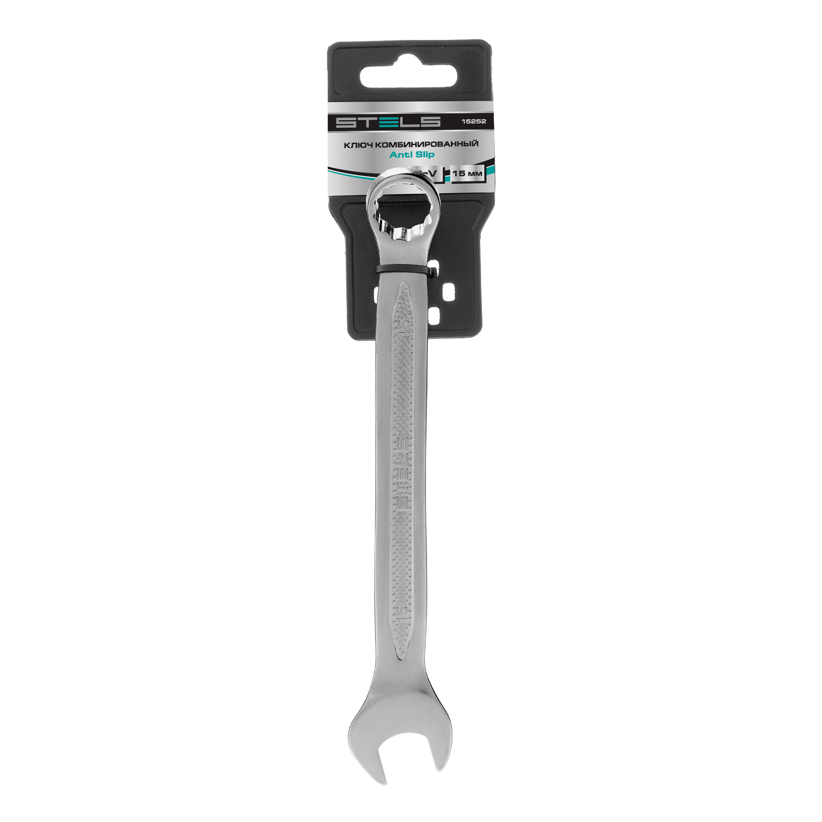 Ключ комбинированный, 15 мм, CrV, антислип Stels в Казани