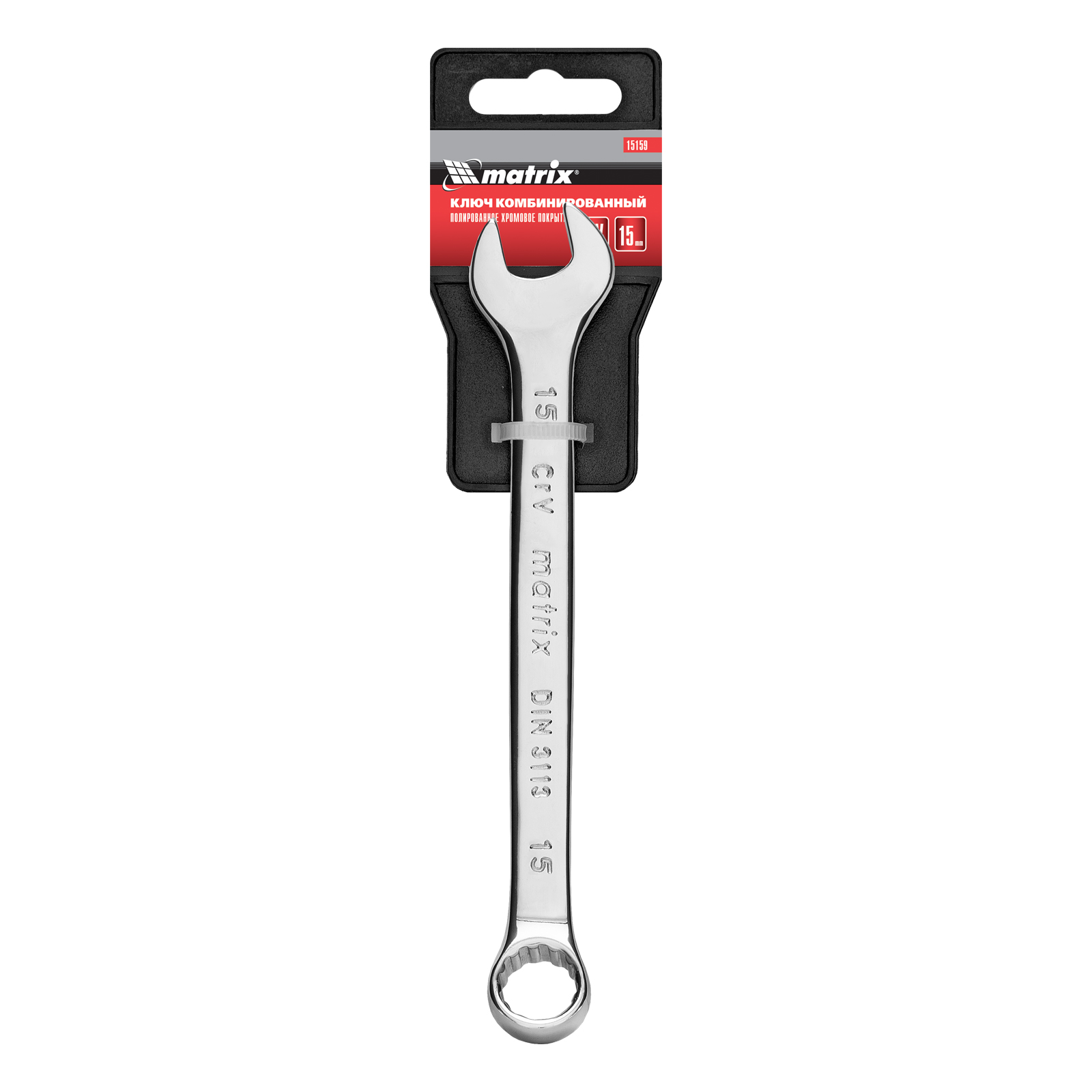 Ключ комбинированный, 15 мм, CrV, полированный хром Matrix в Казани