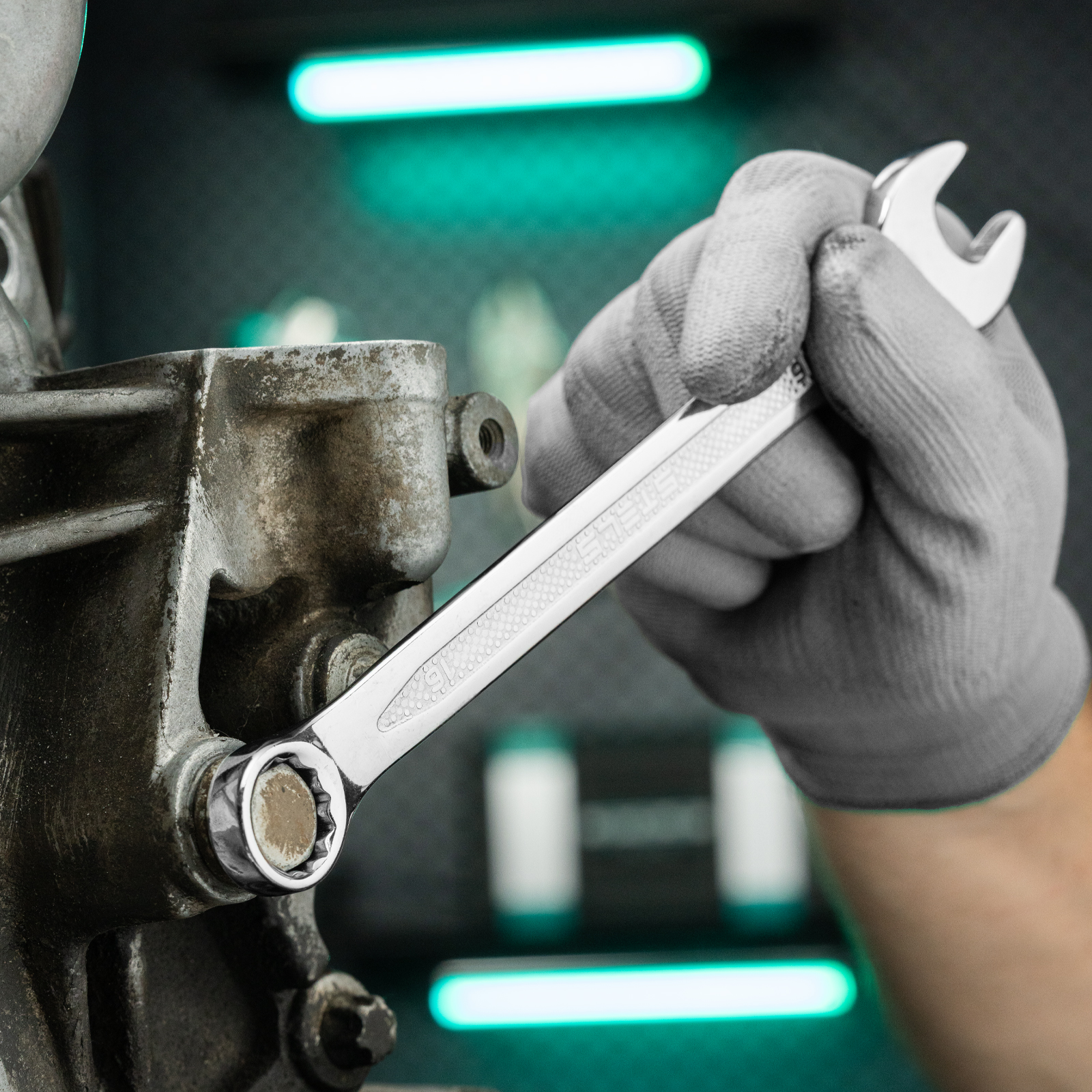 - Надежный хват — благодаря рельефной поверхности ключ не скользит в руке.