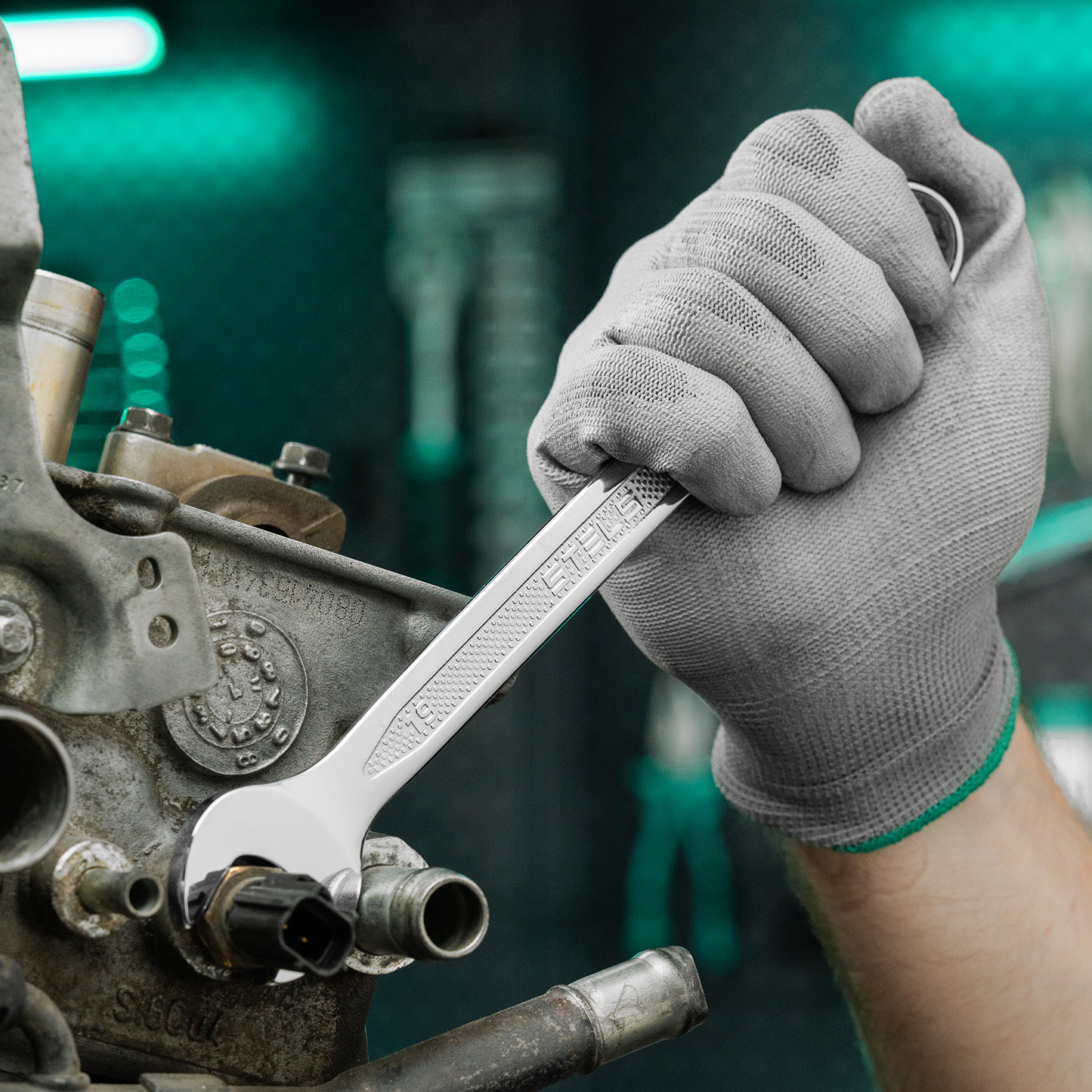- Надежный хват — благодаря рельефной поверхности ключ не скользит в руке.
