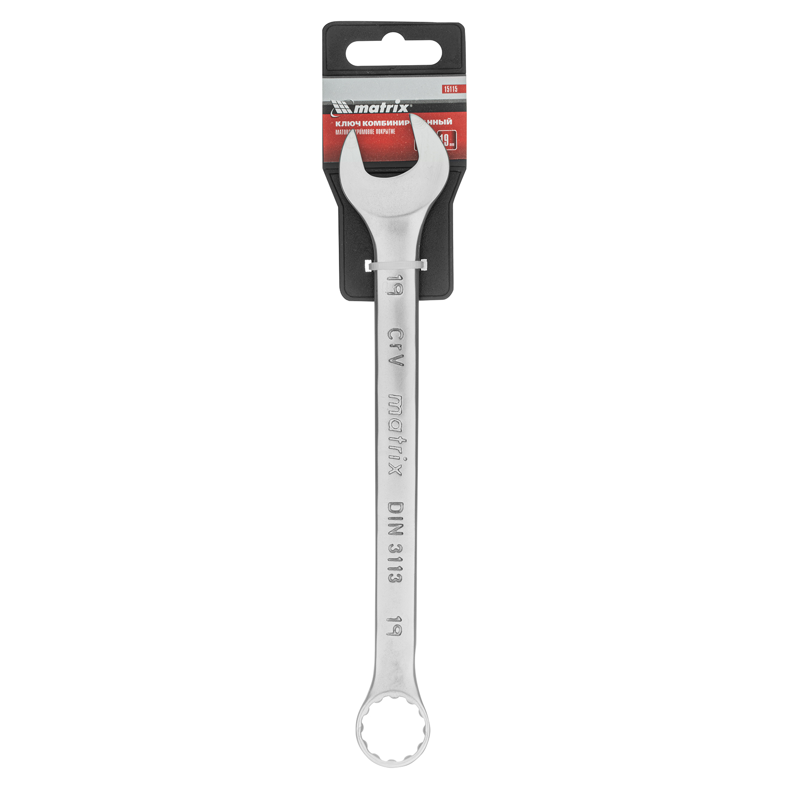 Ключ комбинированный, 19 мм, CrV, матовый хром Matrix