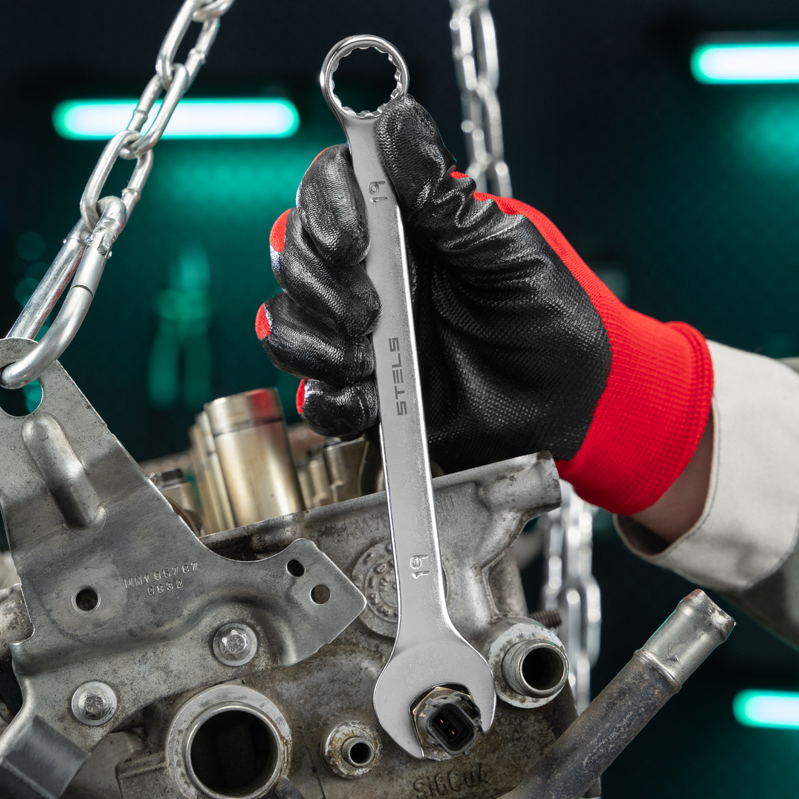 - Высокий показатель прочности — ключ изготовлен из стали хромованадиевой группы, рабочая часть закалена до твердости 45 HRC.