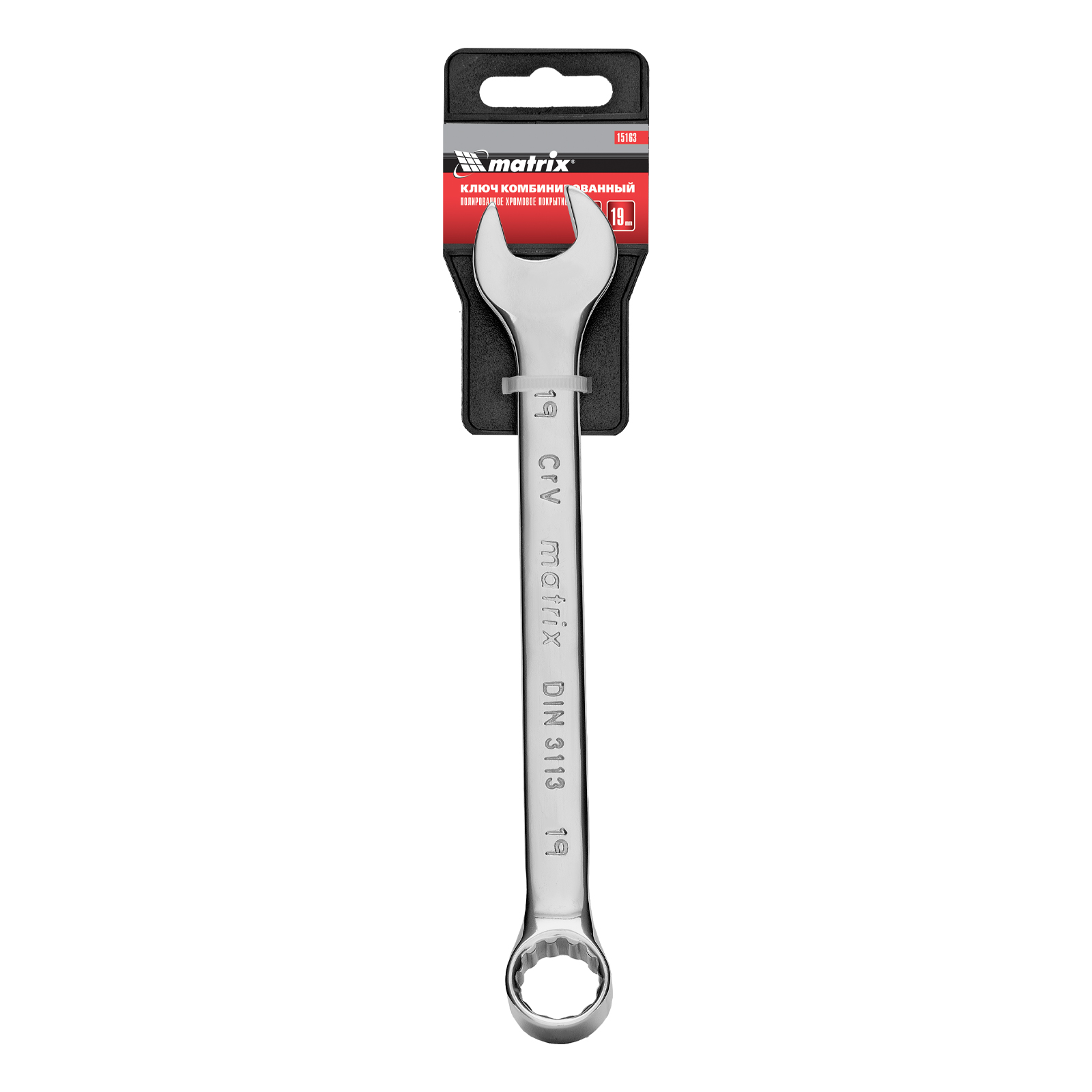 Ключ комбинированный, 19 мм, CrV, полированный хром Matrix