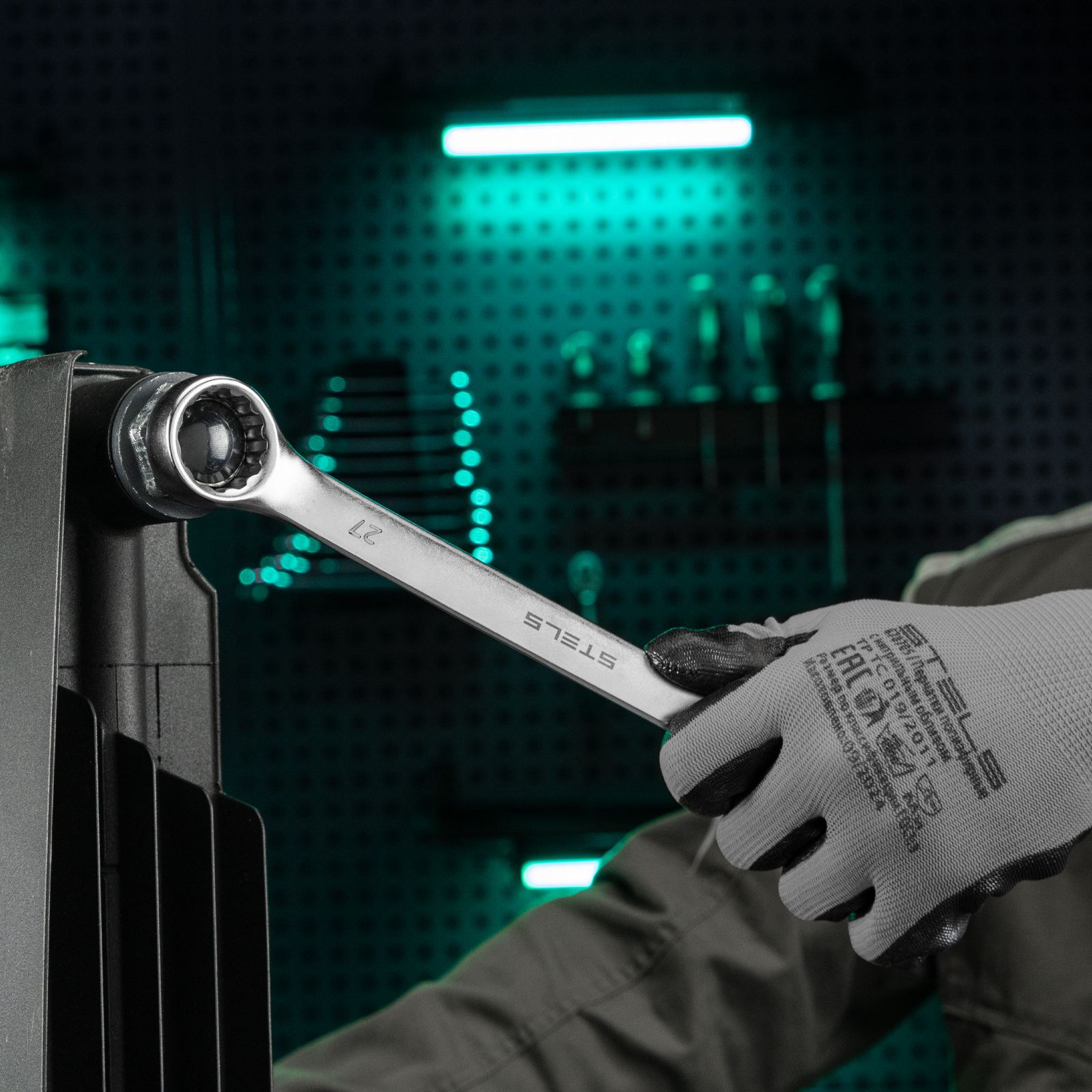 Комбинированный ключ Stels 15218 из стали CrV, 27 мм, покрытый матовым хромом, используется для закручивания и откручивания гаечных и болтовых соединений. Накидная головка имеет 12-гранную внутреннюю поверхность, что облегчает работу с крепежом и уменьшает опасность его повреждения. Ключ применяется в слесарных мастерских и автосервисах, а также будет полезен для решения бытовых задач.