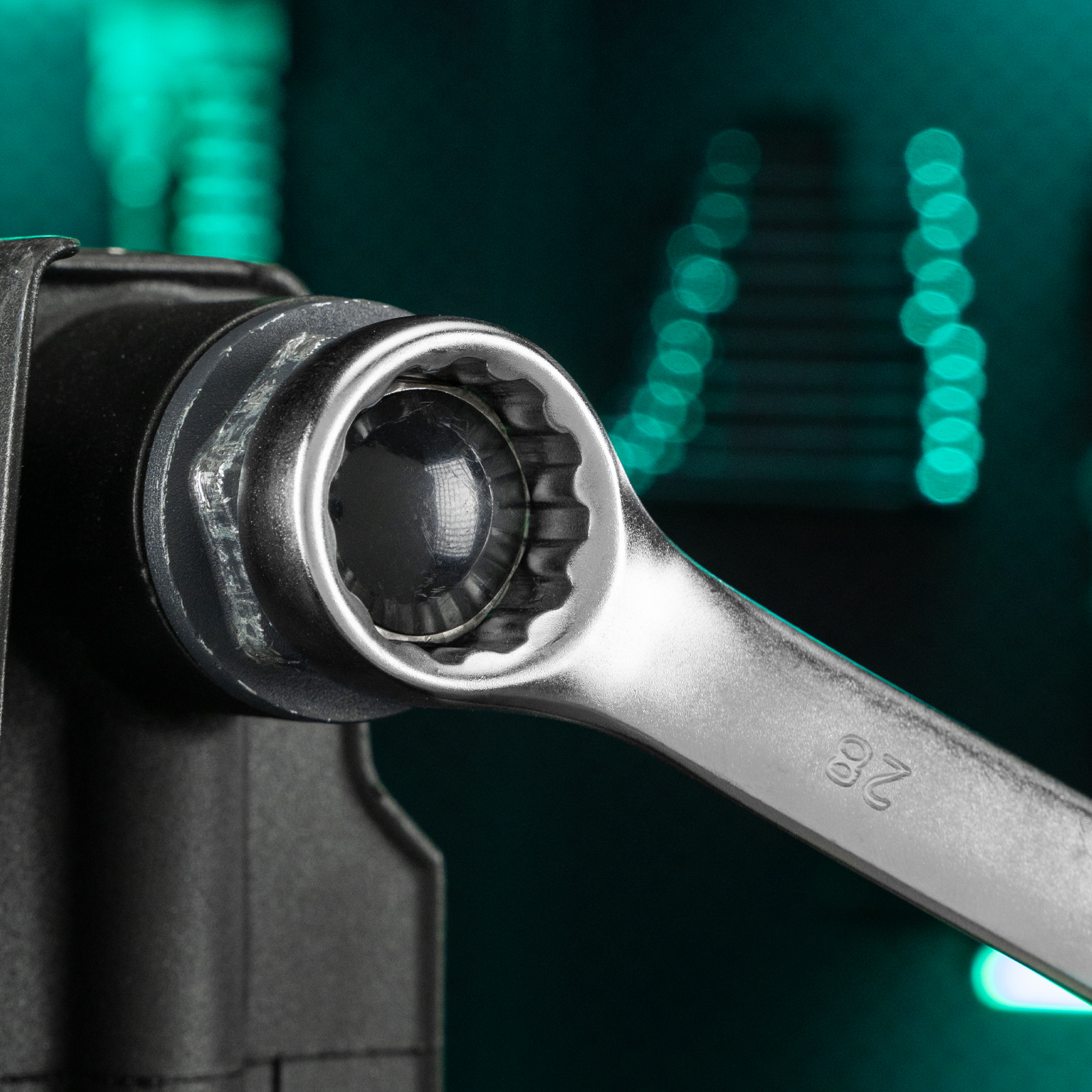 - Комфорт при монтаже в труднодоступных местах — кольцевой зев наклонен под углом в 15 градусов к плоскости ключа.