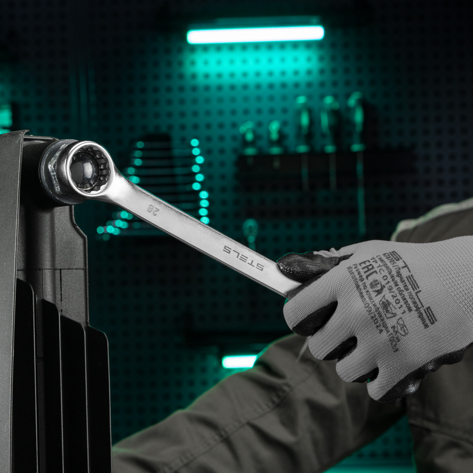 Комбинированный ключ Stels 15229 из стали CrV, 28 мм, покрытый матовым хромом, используется для закручивания и откручивания гаечных и болтовых соединений. Накидная головка имеет 12-гранную внутреннюю поверхность, что облегчает работу с крепежом и уменьшает опасность его повреждения. Ключ применяется в слесарных мастерских и автосервисах, а также будет полезен для решения бытовых задач.
