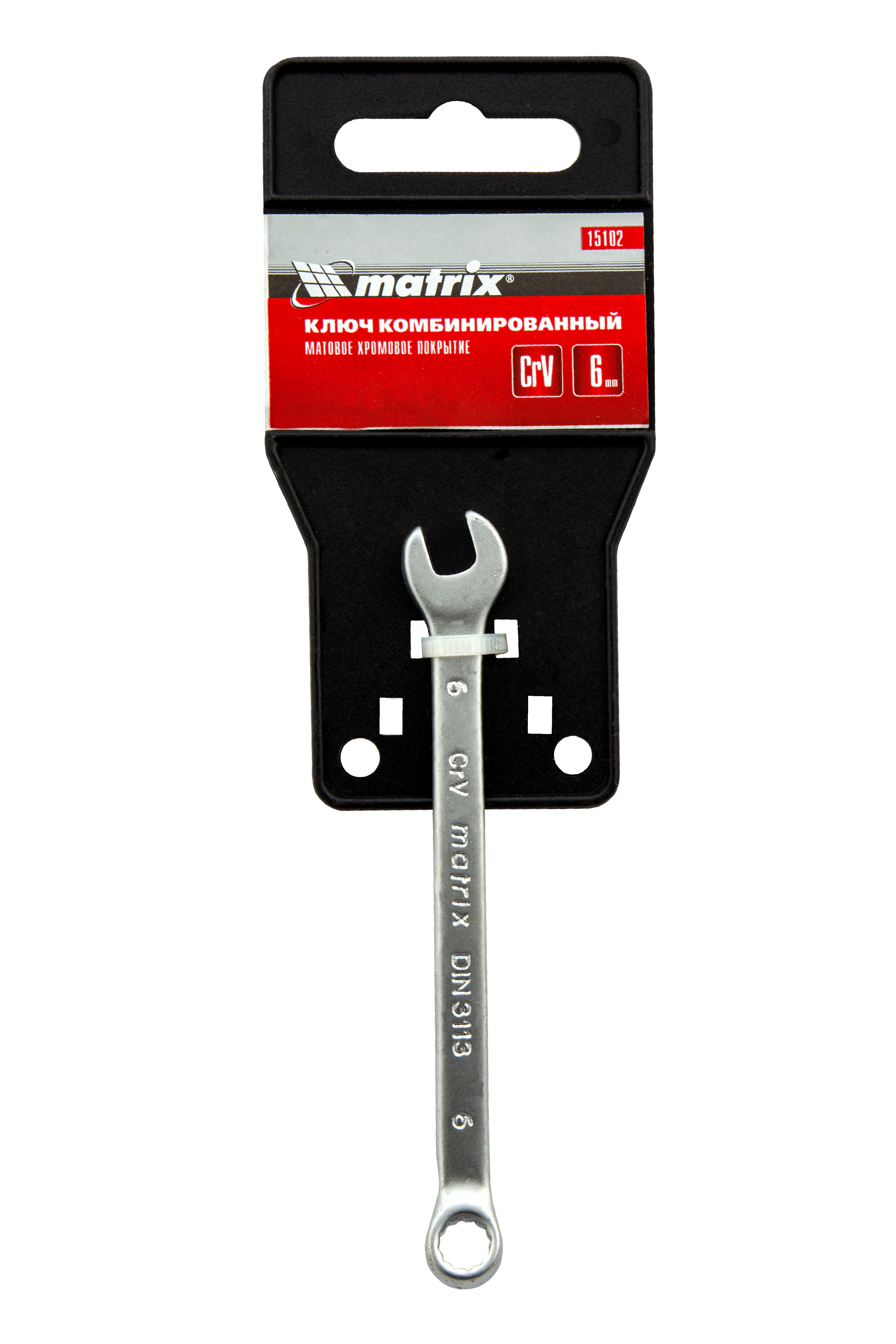 Ключ комбинированный, 6 мм, CrV, матовый хром Matrix