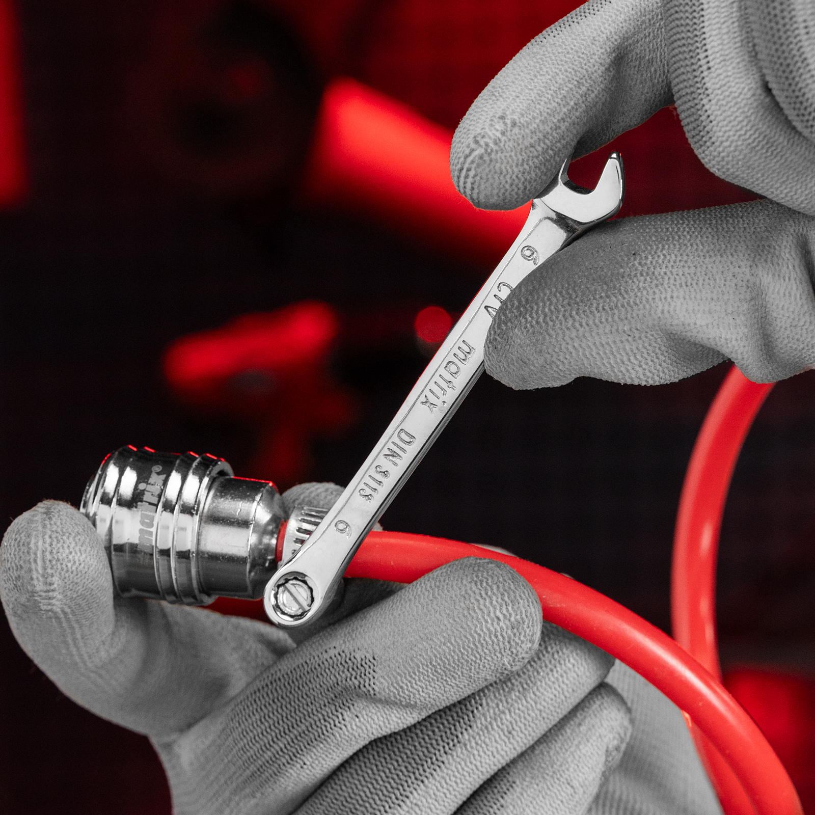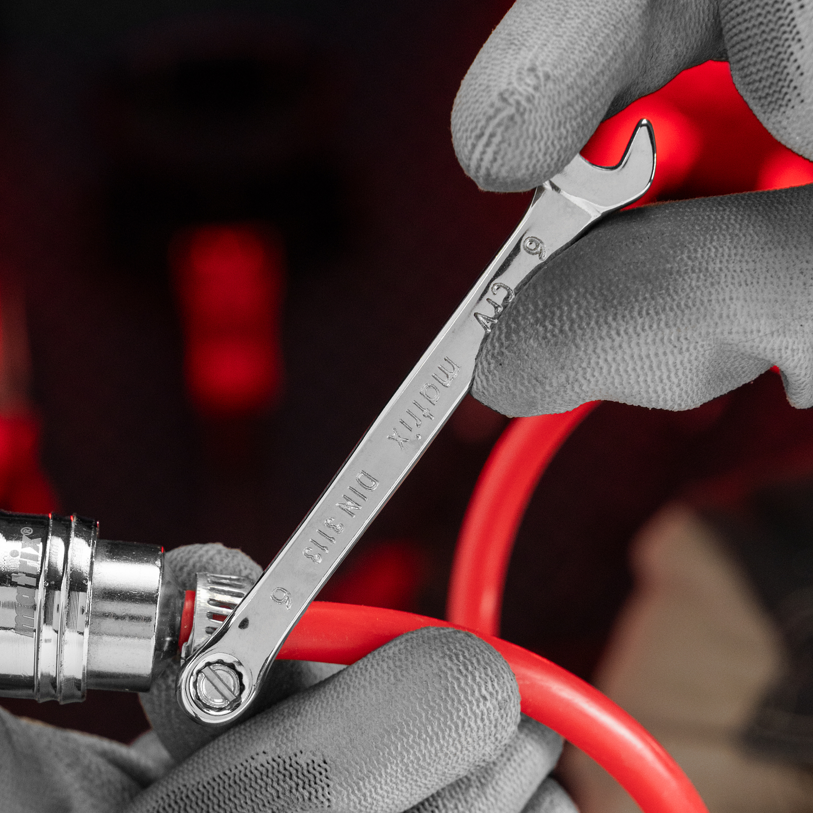 - Аккуратная работа — накидные части с 12-гранным профилем охватывают всю поверхность крепежа, уменьшая риск деформации его граней.