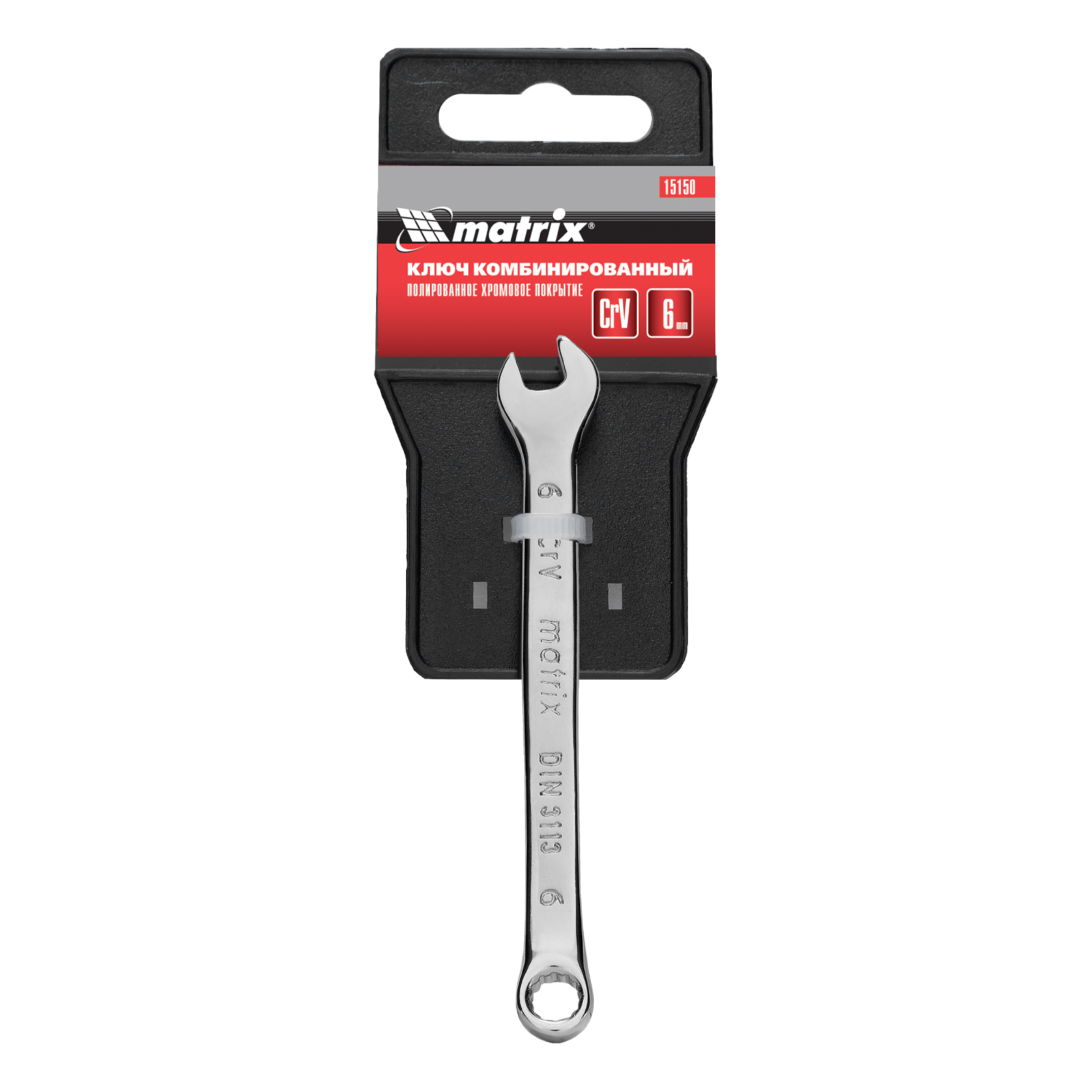 Ключ комбинированный, 6 мм, CrV, полированный хром Matrix