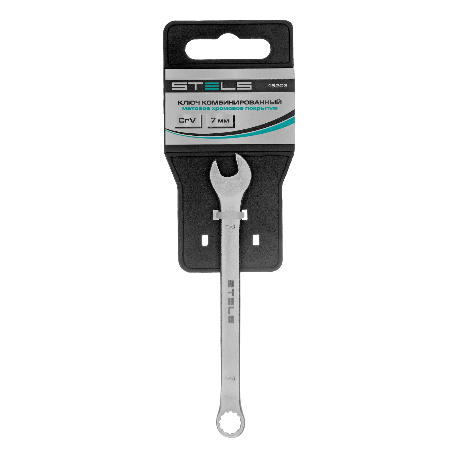 Ключ комбинированный, 7 мм, CrV, матовый хром Stels в Казани